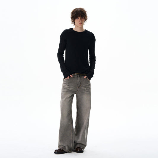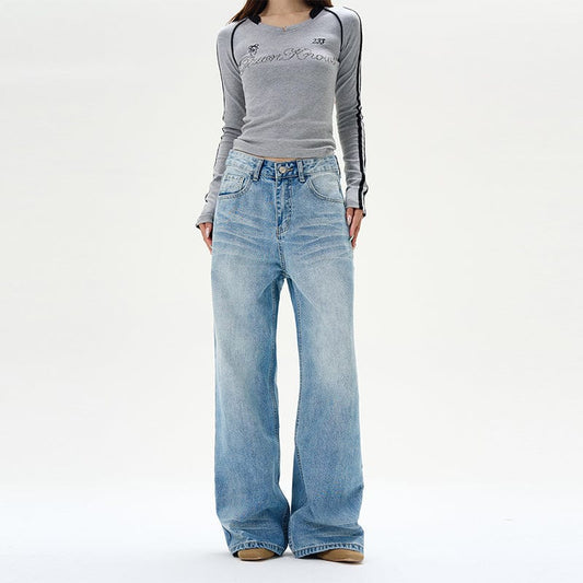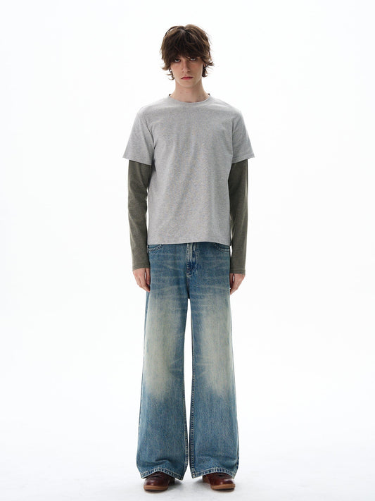 RT No. 50250 WHISKER WASH WIDE STRAIGHT DENIM JEANS