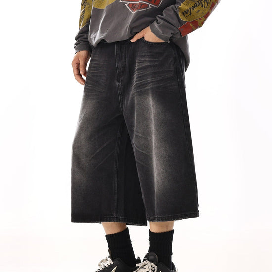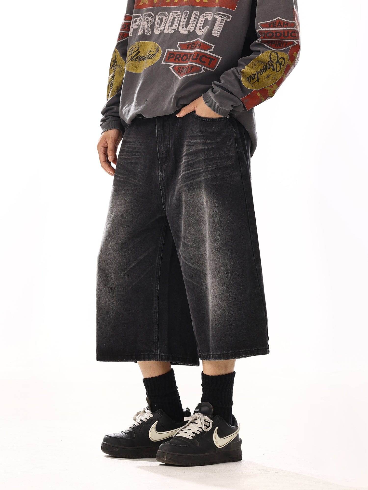 RT No. 13010 WASHED BLACK DENIM SHORT JEANS