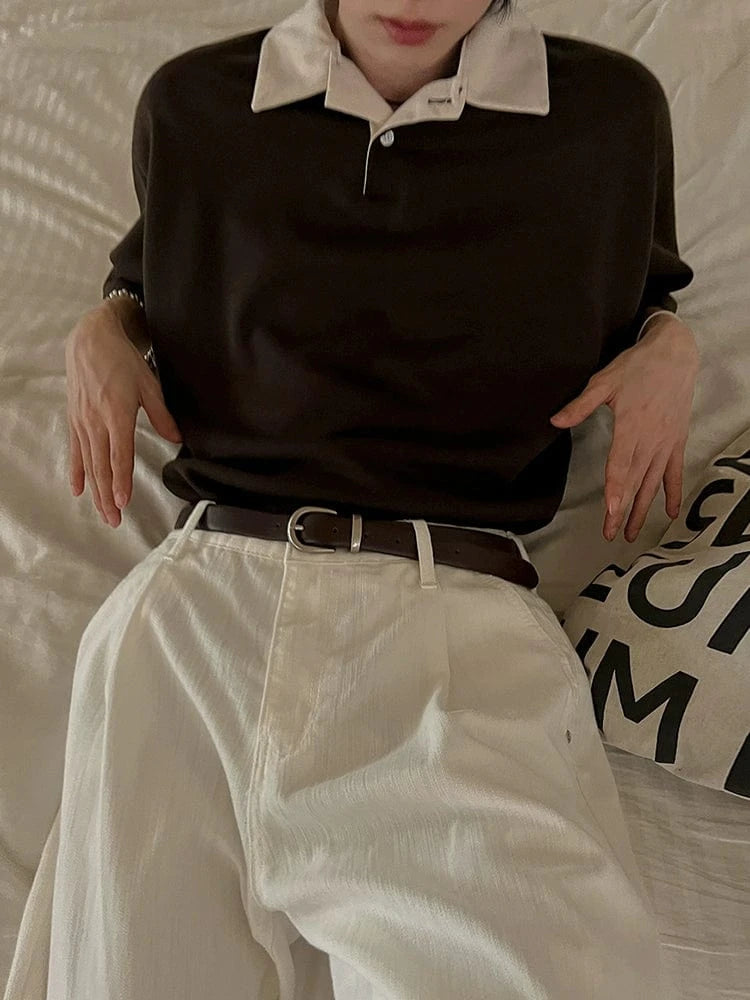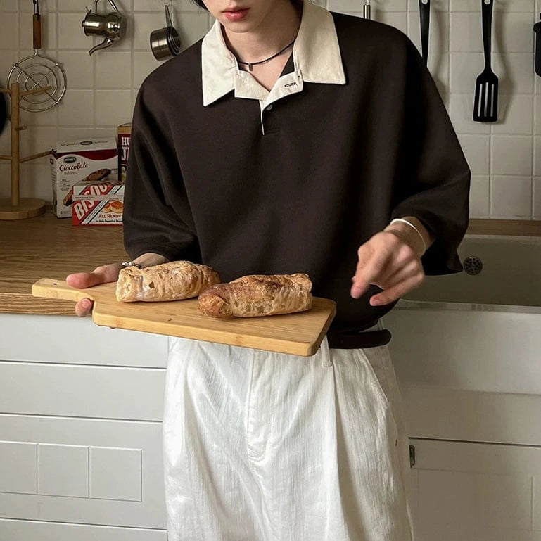 Meet the RT No. 18112 Oversize Brown Polo — a versatile, two-tone polo with a classic polo collar in a relaxed silhouette.