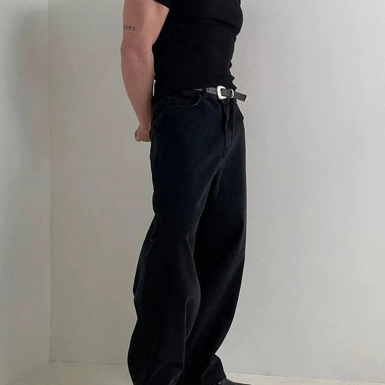 RT No. 7002 WASHED BLACK WIDE STRAIGHT DENIM JEANS