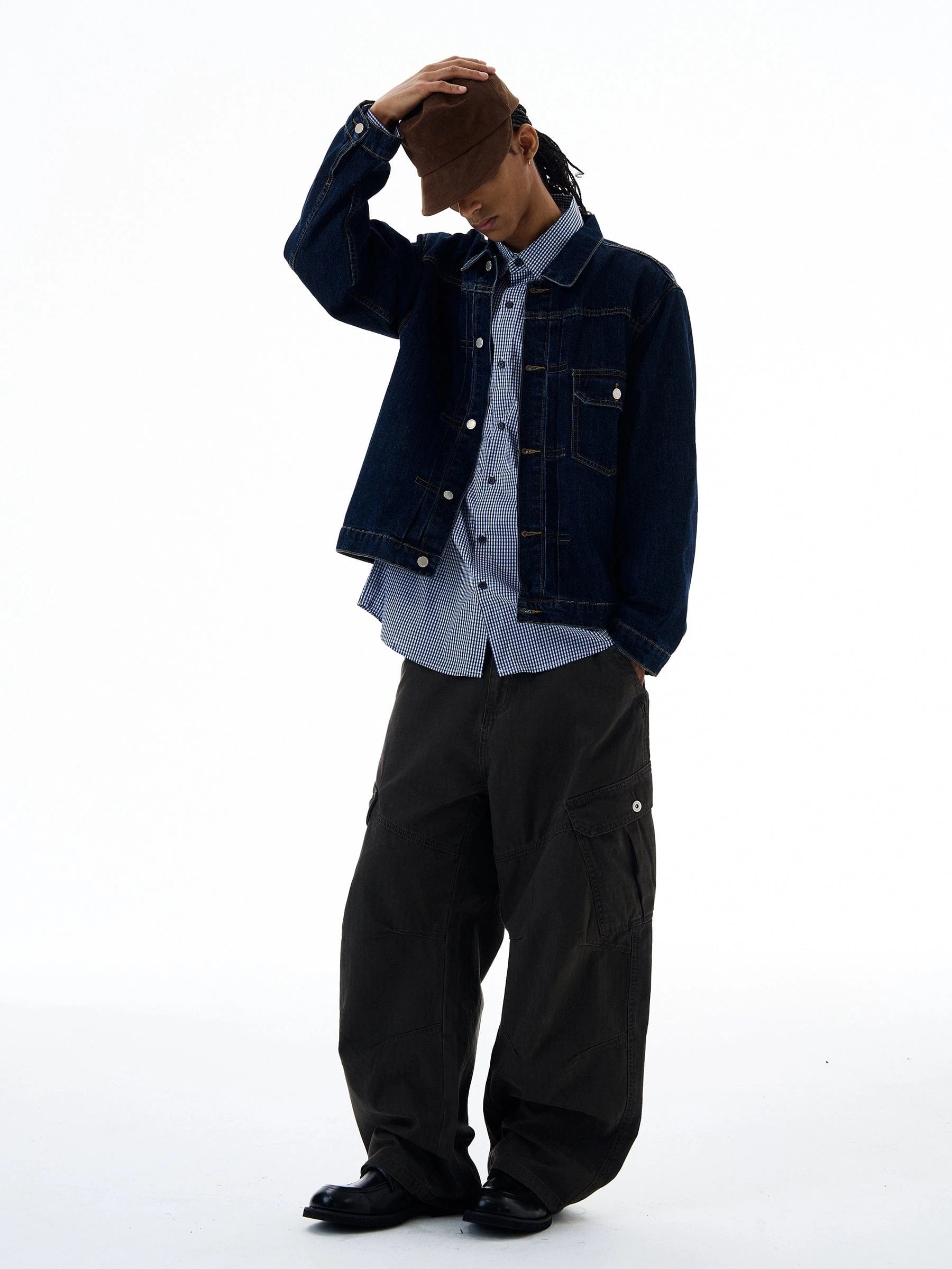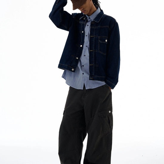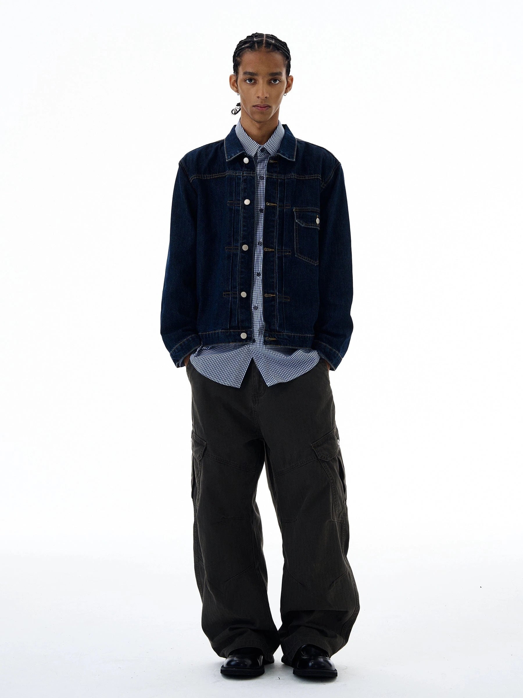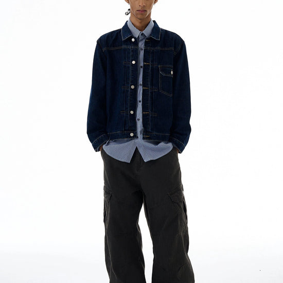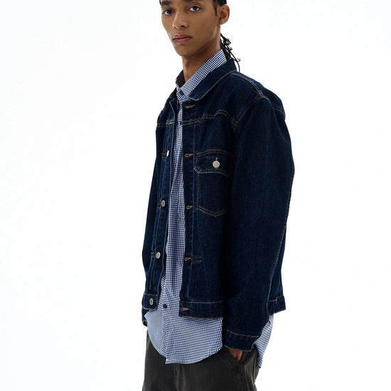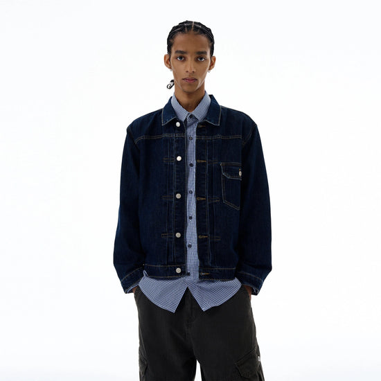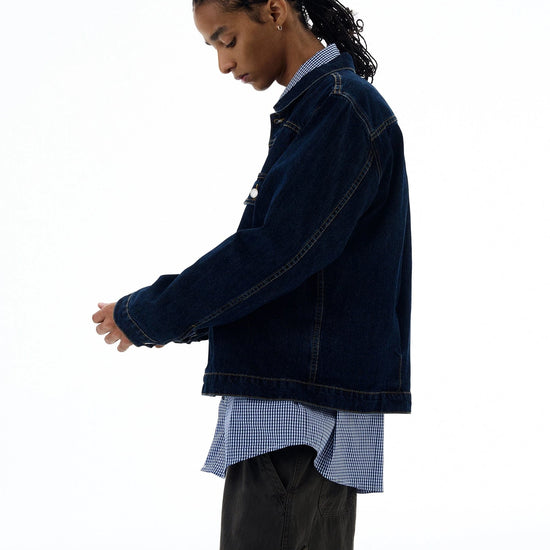 RT No. 19534 NAVY BLUE STITCHED DENIM JACKET