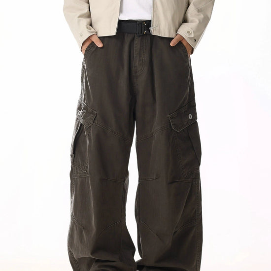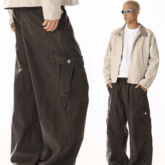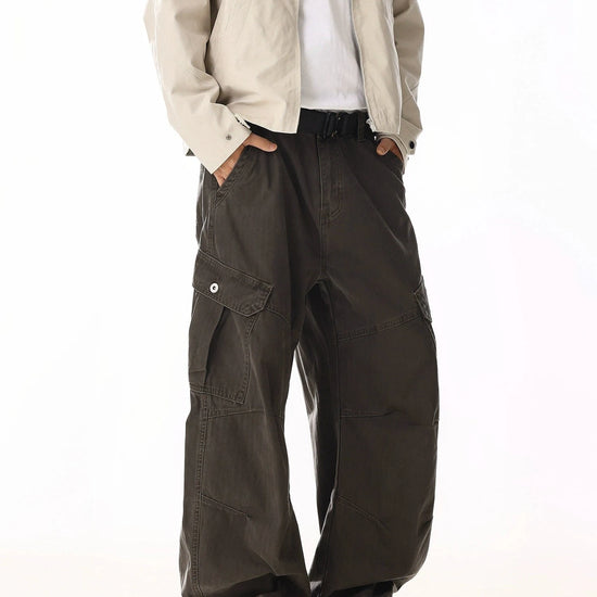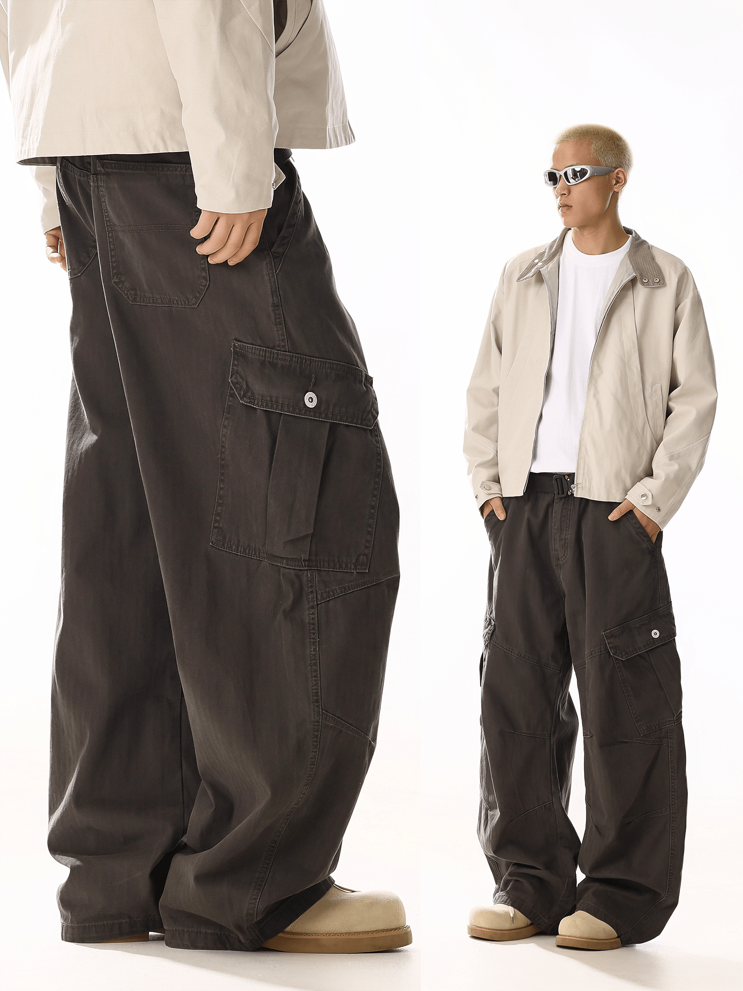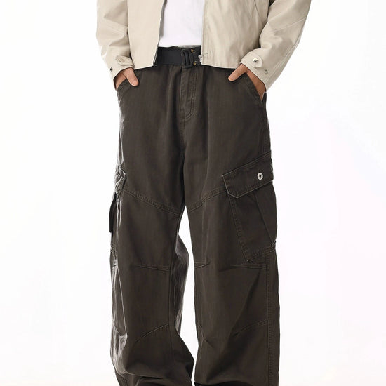 - Reconstructed brown cargo pants with a straight fit for a clean, contemporary look.