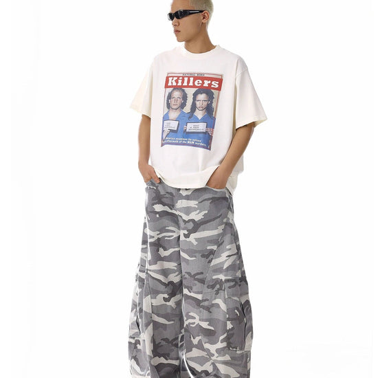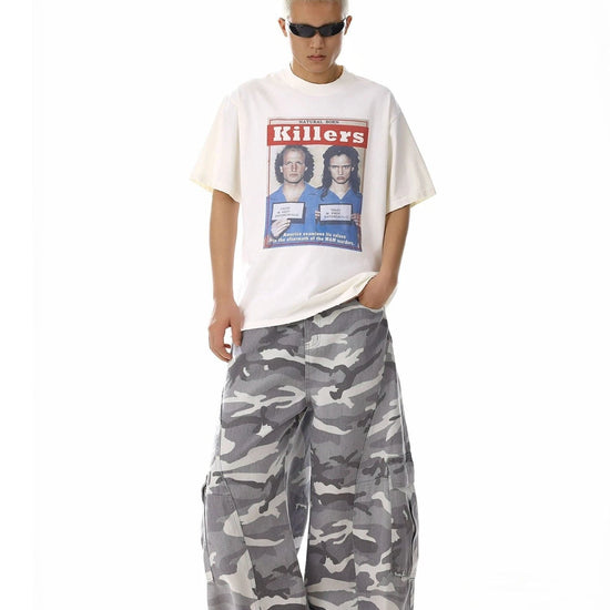 RT No. 19829 Winter Camo Cargo Straight Pants blend rugged practicality with a modern silhouette. The winter camouflage print delivers a season-ready look, while the cargo design provides practical storage for everyday essentials. The baggy, straight leg offers relaxed mobility for outdoor activities and everyday wear.