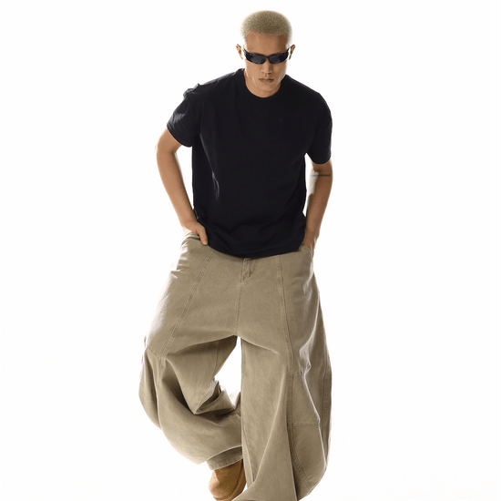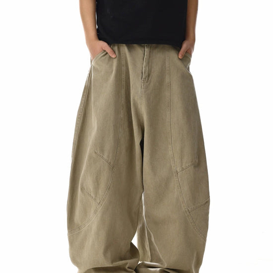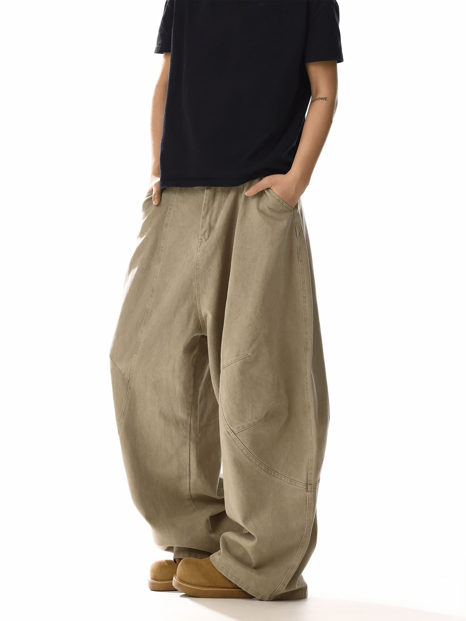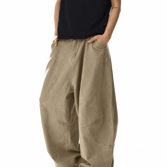 RT No. 19836 Khaki Scimitar Baggy Pants blend a relaxed, statement-making silhouette with a timeless khaki shade. Designed for versatile styling, this piece transitions from casual to contemporary looks with ease.