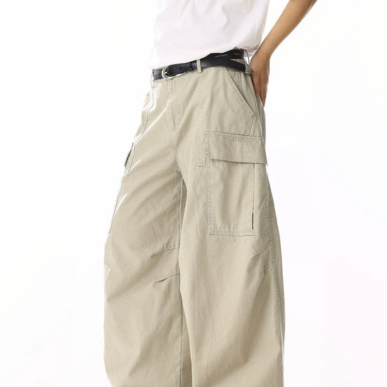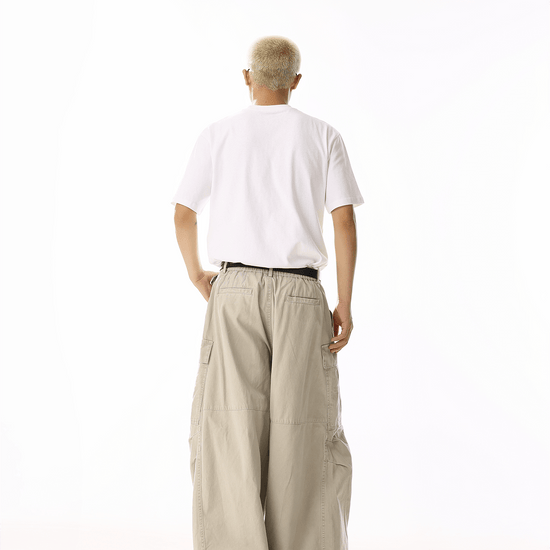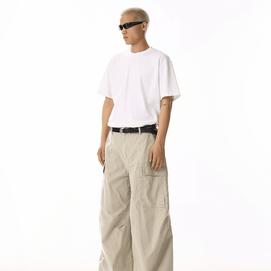 RT No. 19839 CREAM BAGGY STRAIGHT CARGO PANTS