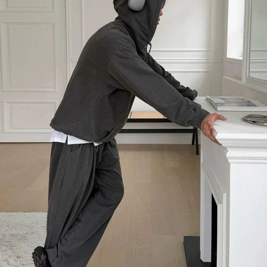 RT No. 25004 GRAY PULLOVER HOODIE & PLEATED SWEATPANTS