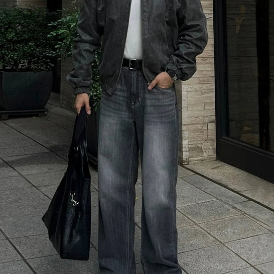 RT No. 7002 WASHED BLACK WIDE STRAIGHT DENIM JEANS