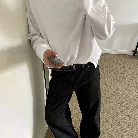 Exquisitely crafted in premium black denim, this straight-leg design embodies quiet luxury and enduring provenance. Meticulous stitching, a refined drape, and durable materials fuse to create a timeless staple with lasting value for discerning wardrobes.