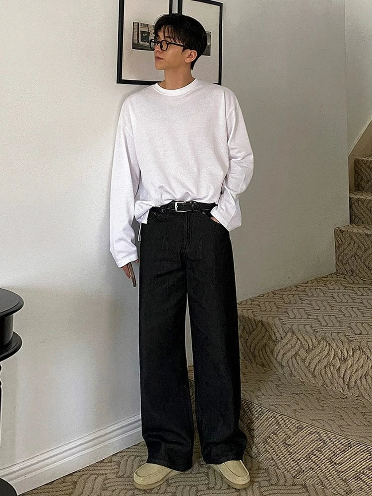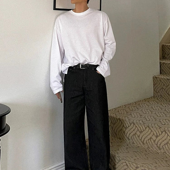RT No. 7002 WASHED BLACK WIDE STRAIGHT DENIM JEANS