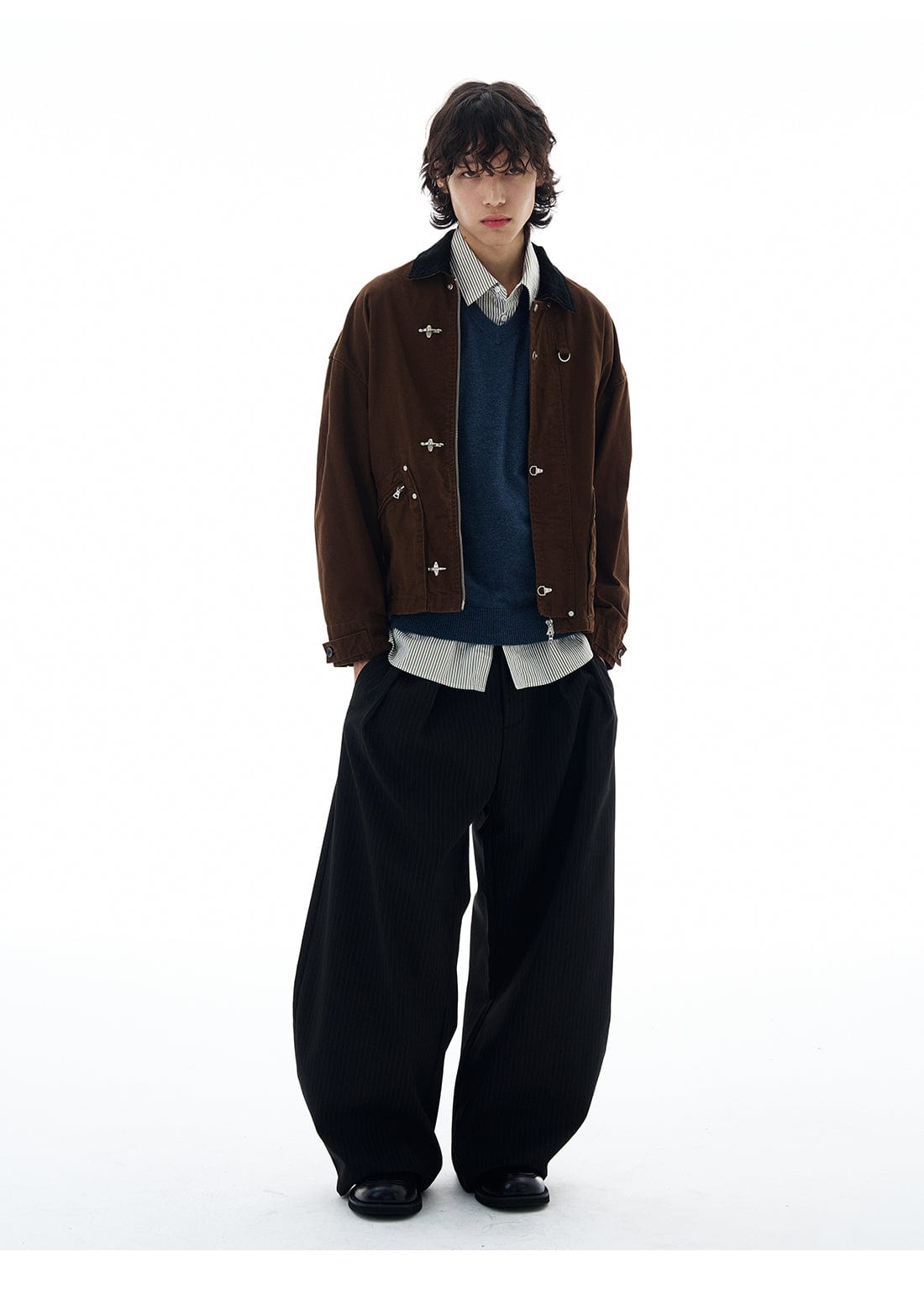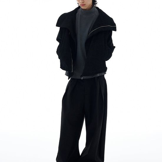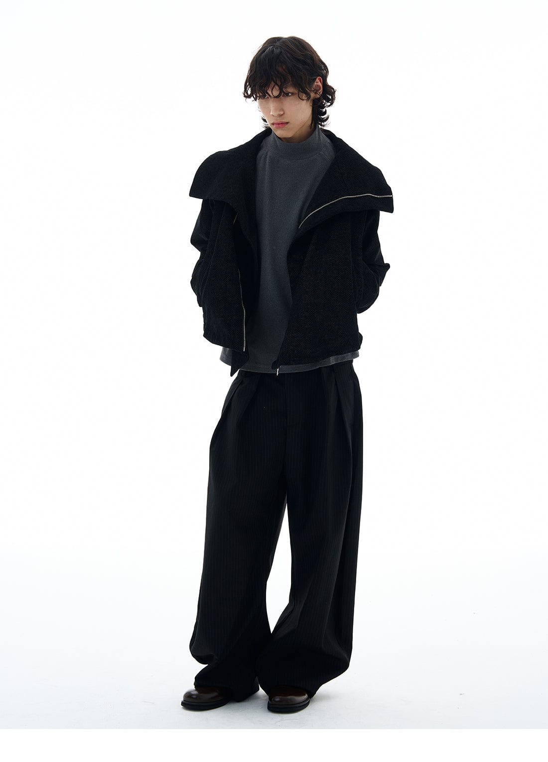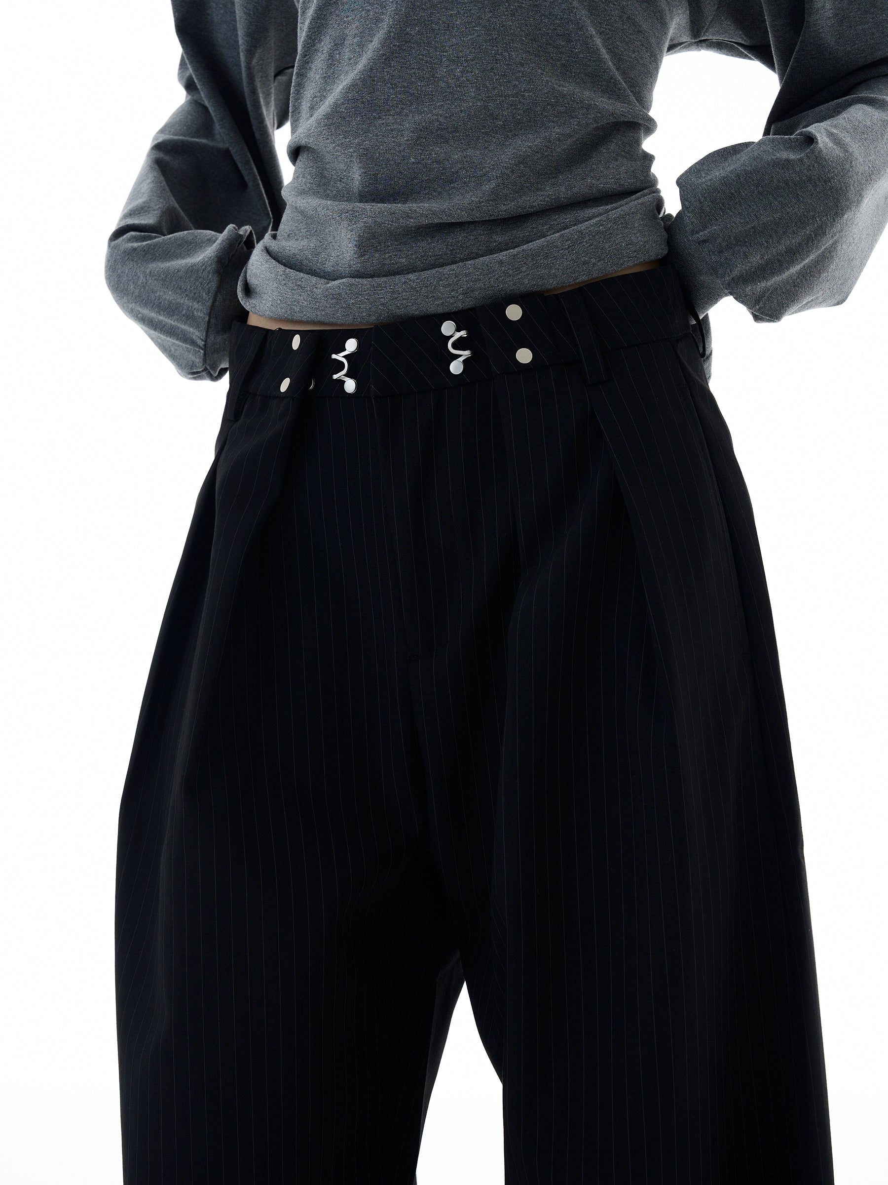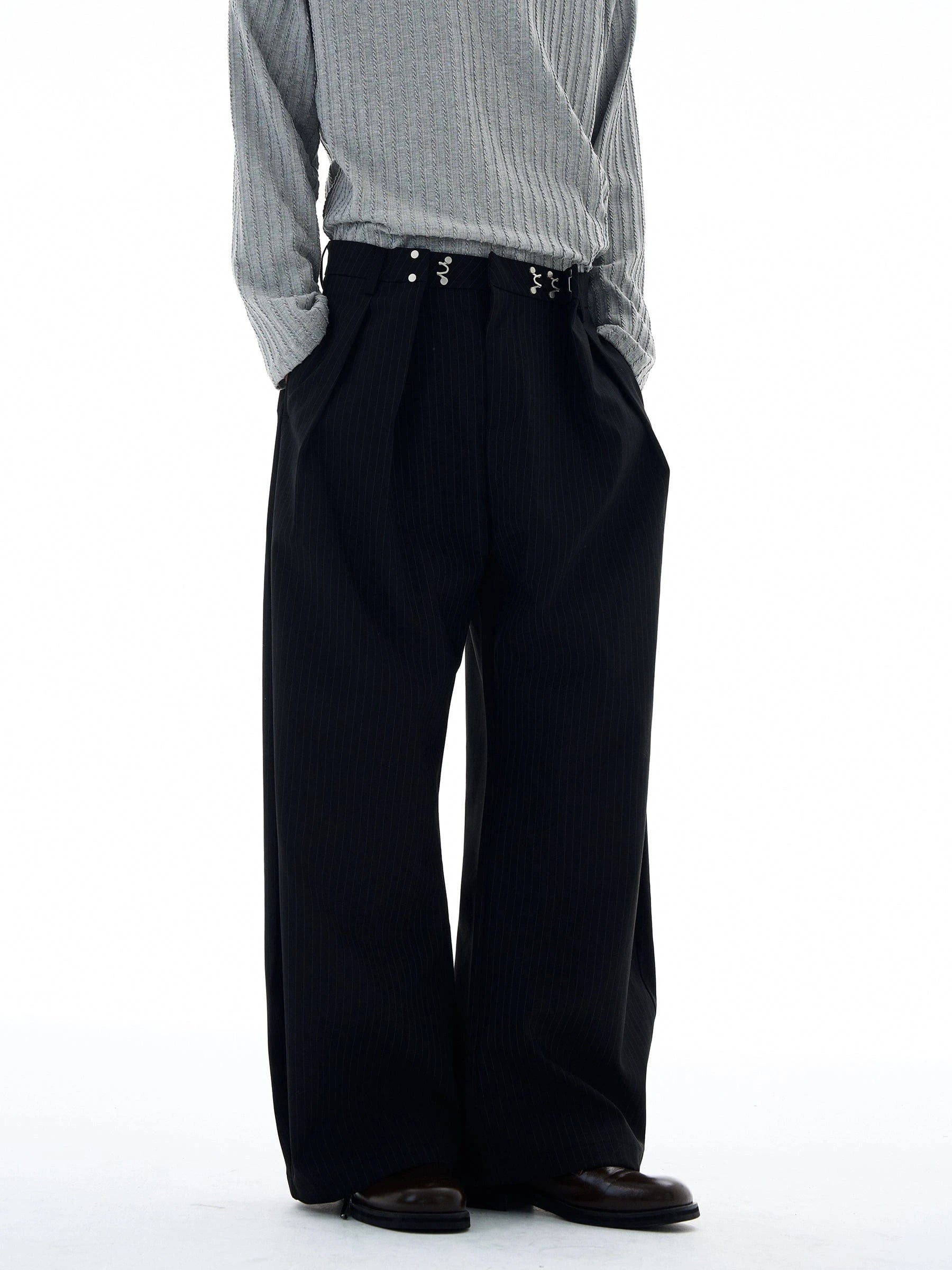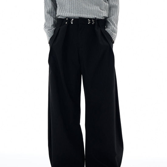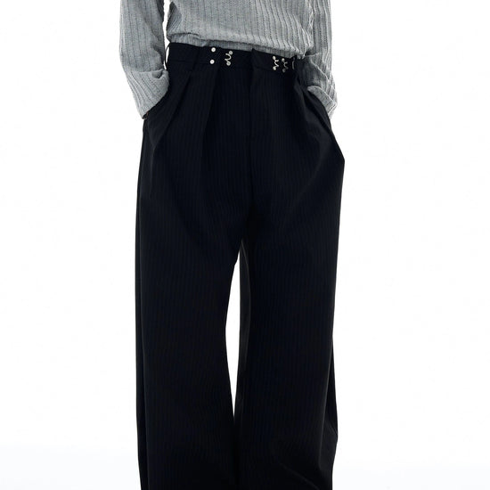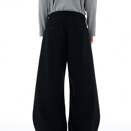 Exquisitely crafted with a heritage-inspired silhouette, these black striped pleated straight pants embody quiet luxury and enduring provenance. Meticulous tailoring and premium materials fuse timeless value with modern wearability.