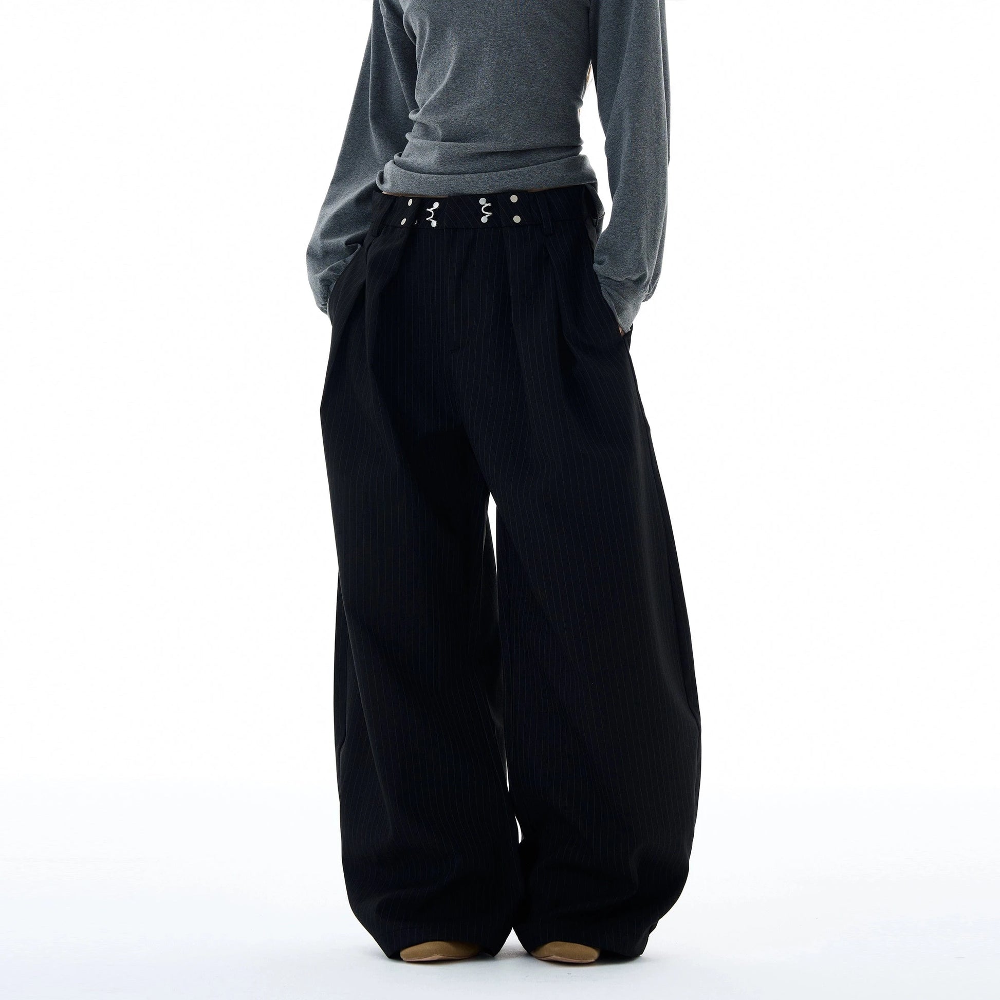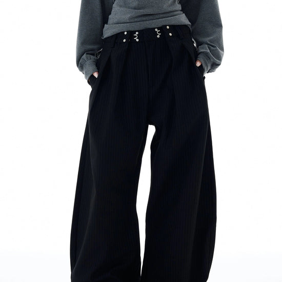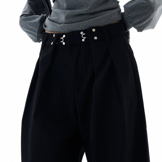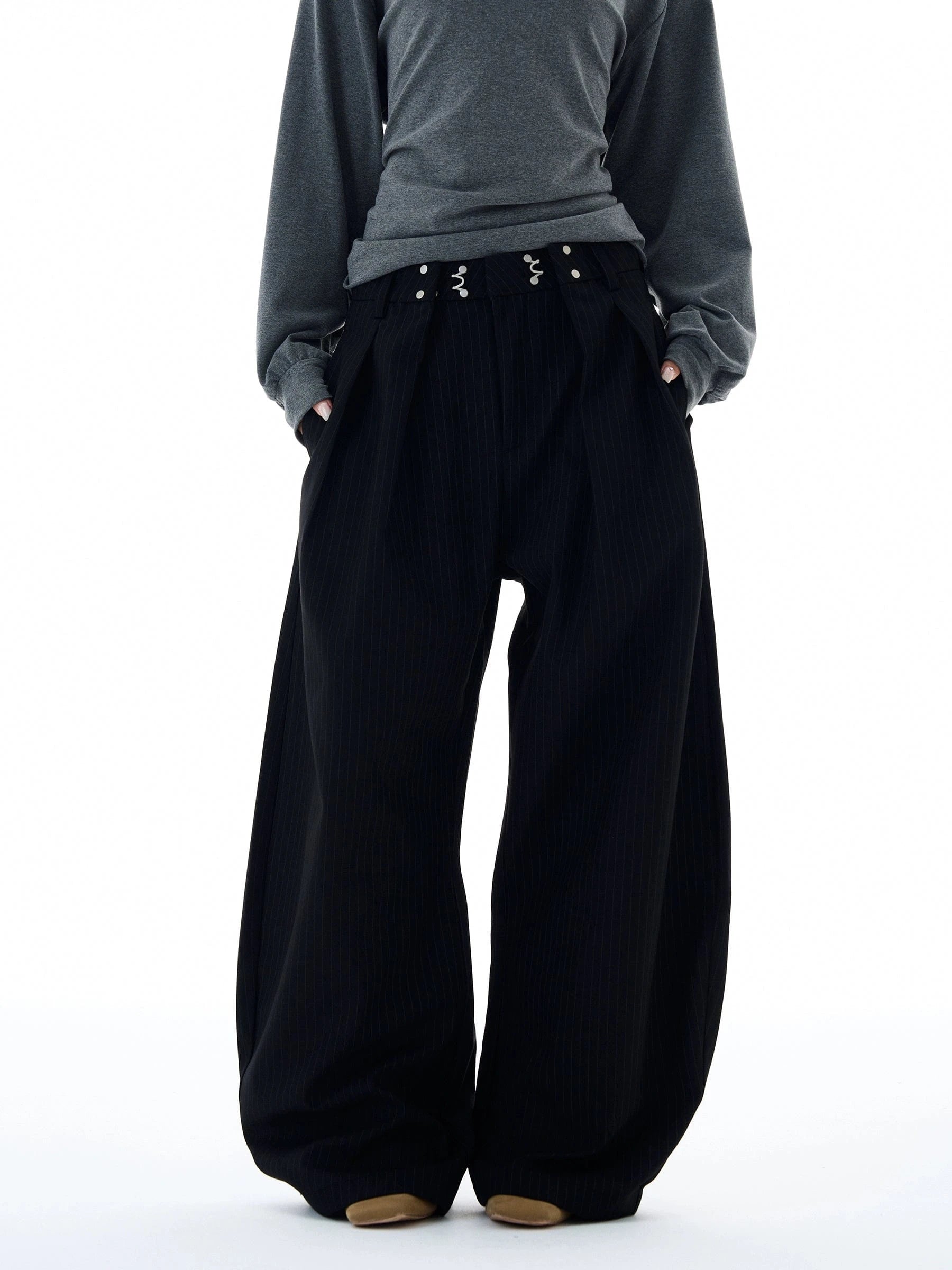 RT No. 25025 BLACK STRIPED PLEATED STRAIGHT PANTS