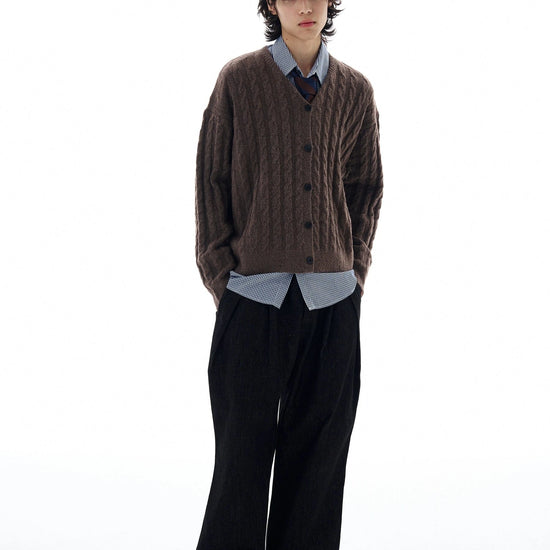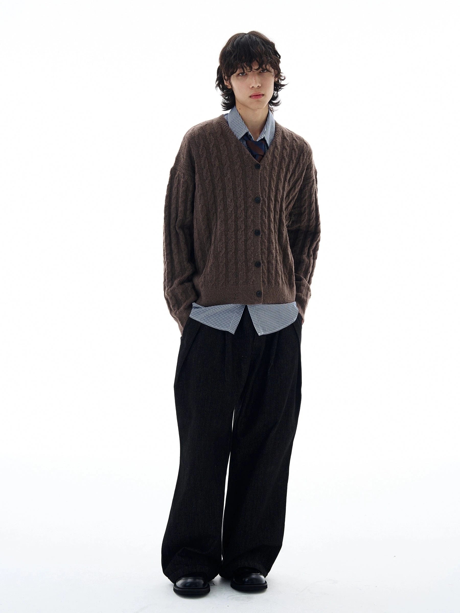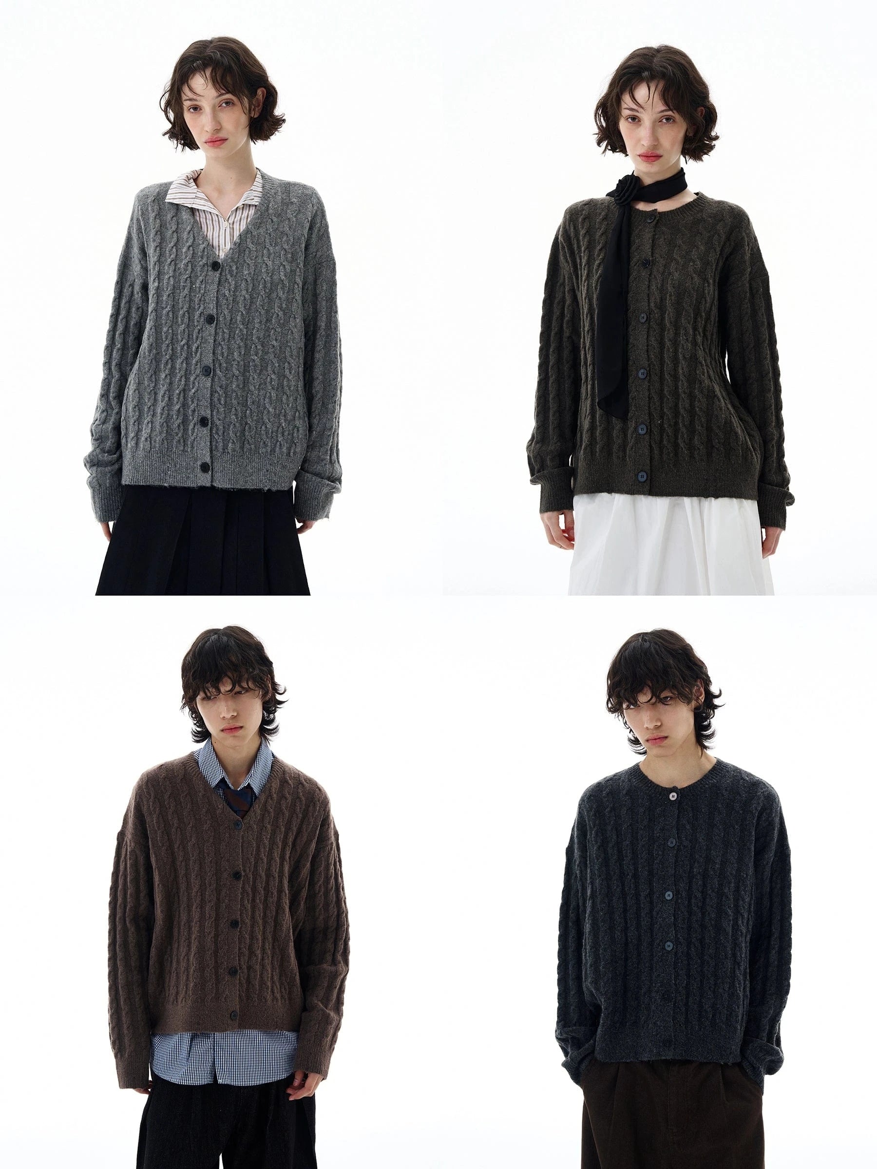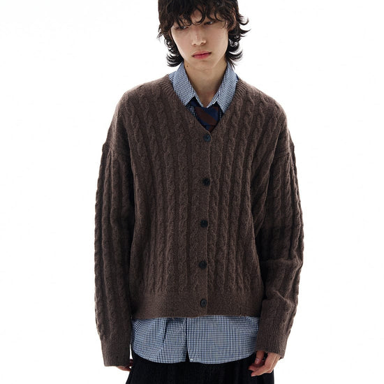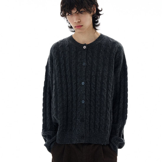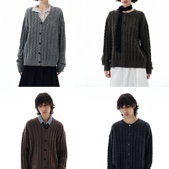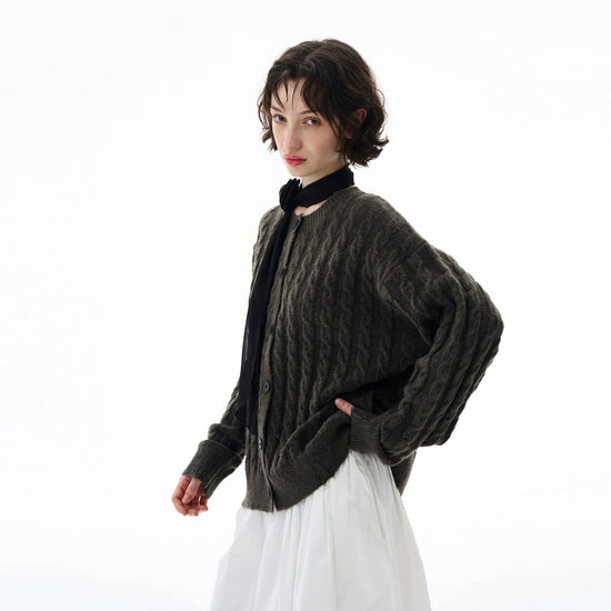 RT No. 25026 KNIT TWIST BUTTON-UP SWEATER
