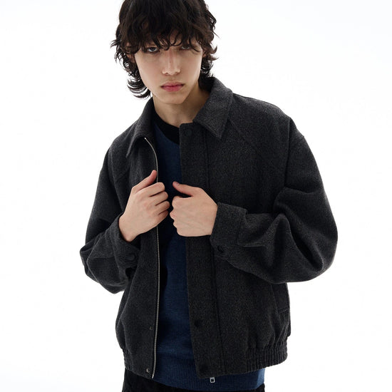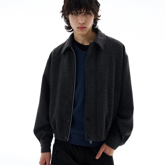 A refined gray woolen zipper jacket crafted with meticulous hand-finishing, provenance rooted in timeless design and premium materials. Its enduring silhouette and subtle hardware convey quiet luxury and collector-worthy elegance.