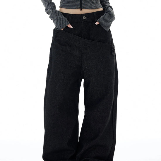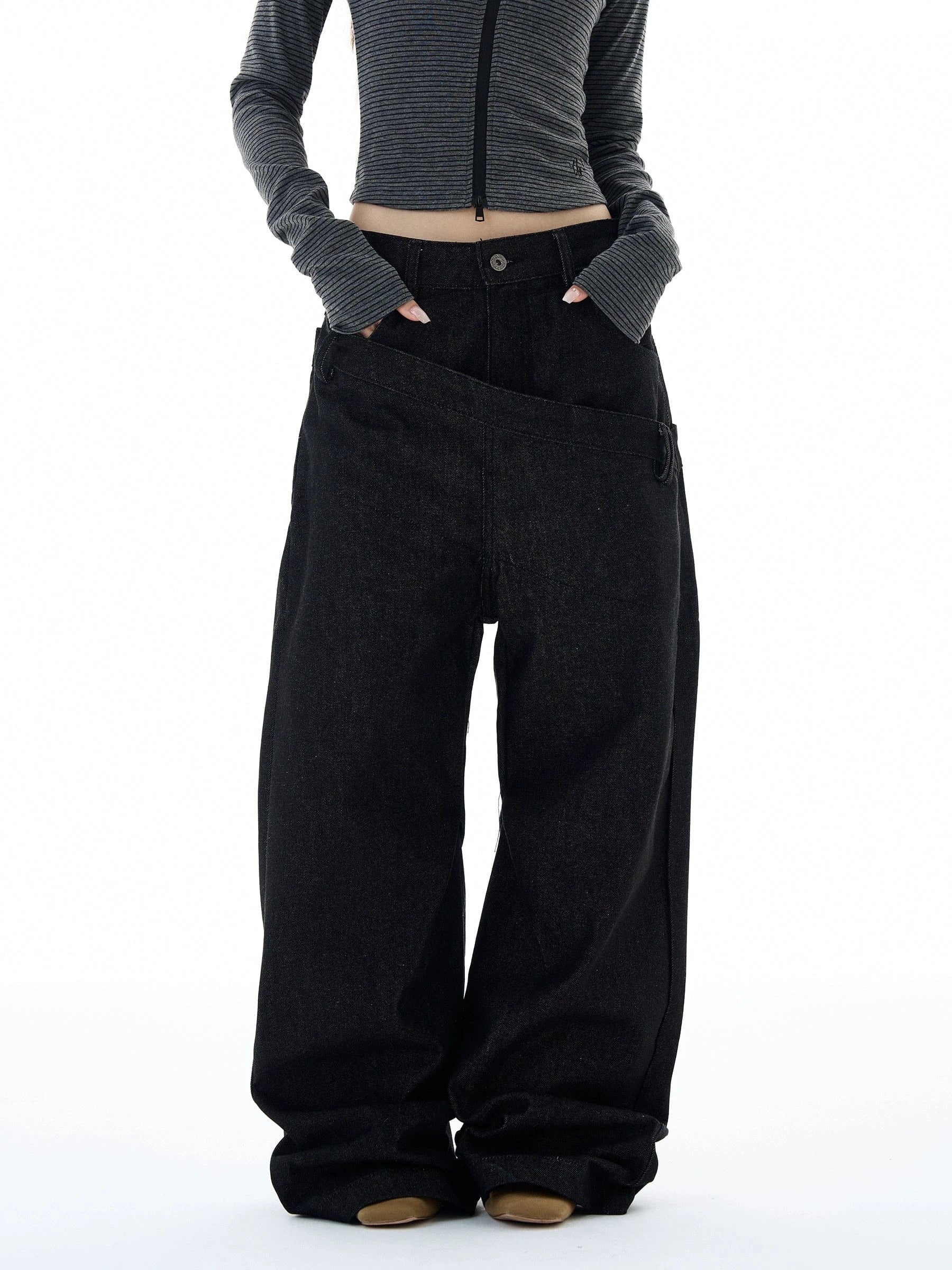 RT No. 25042 BLACK DOUBLE-WAIST STRAIGHT JEANS