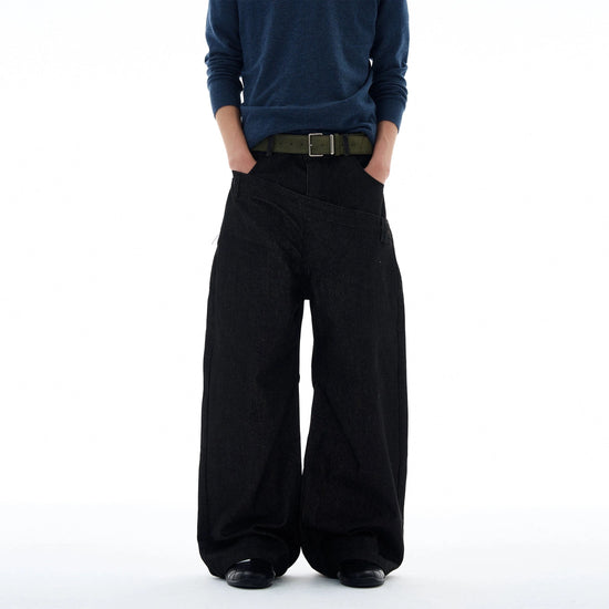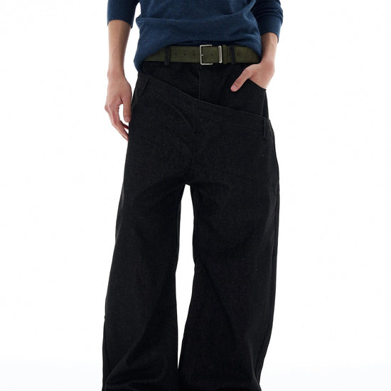 A meticulously crafted pair in deep black denim, forged with heritage craft. Subtle double-waist construction reflects timeless utility and refined lineage, while premium fabrics ensure enduring character and collector appeal.