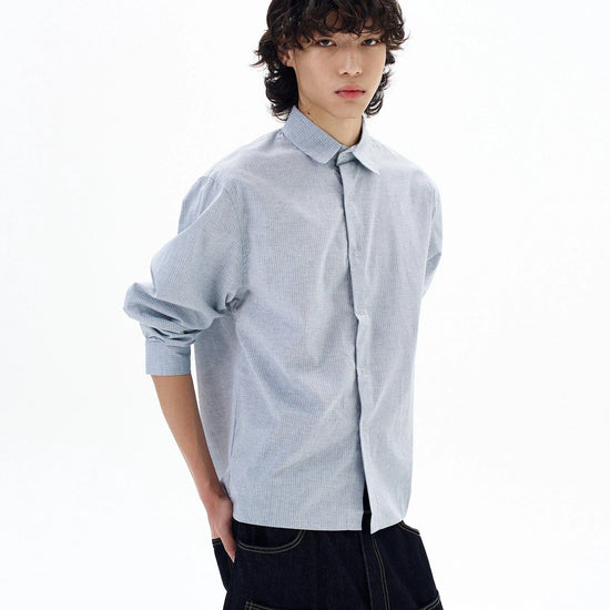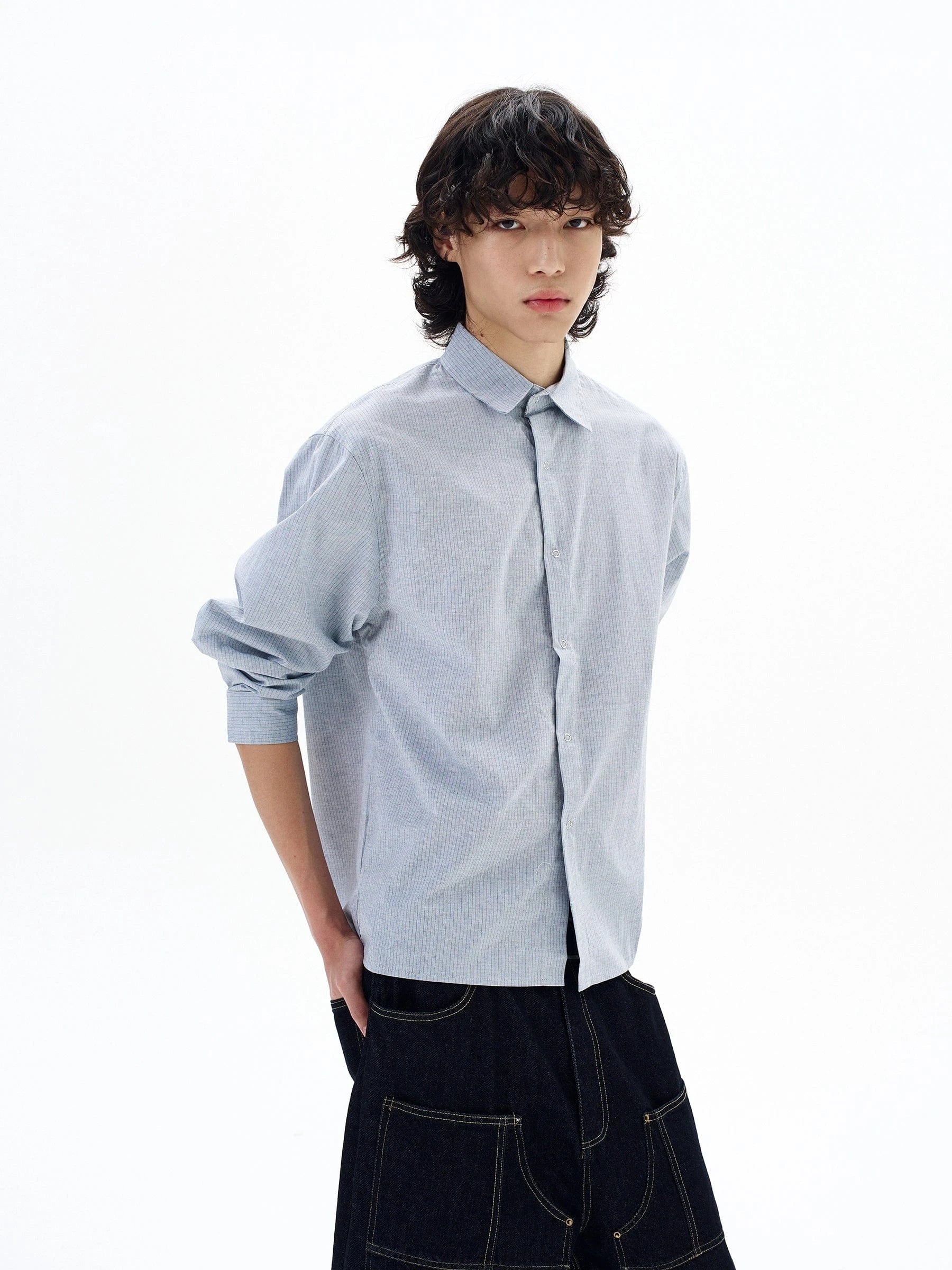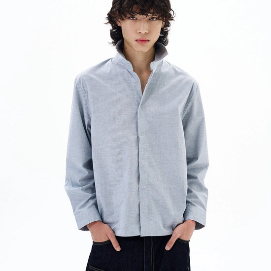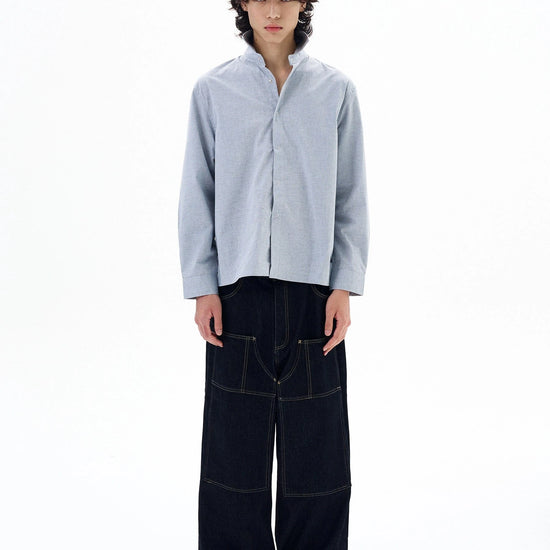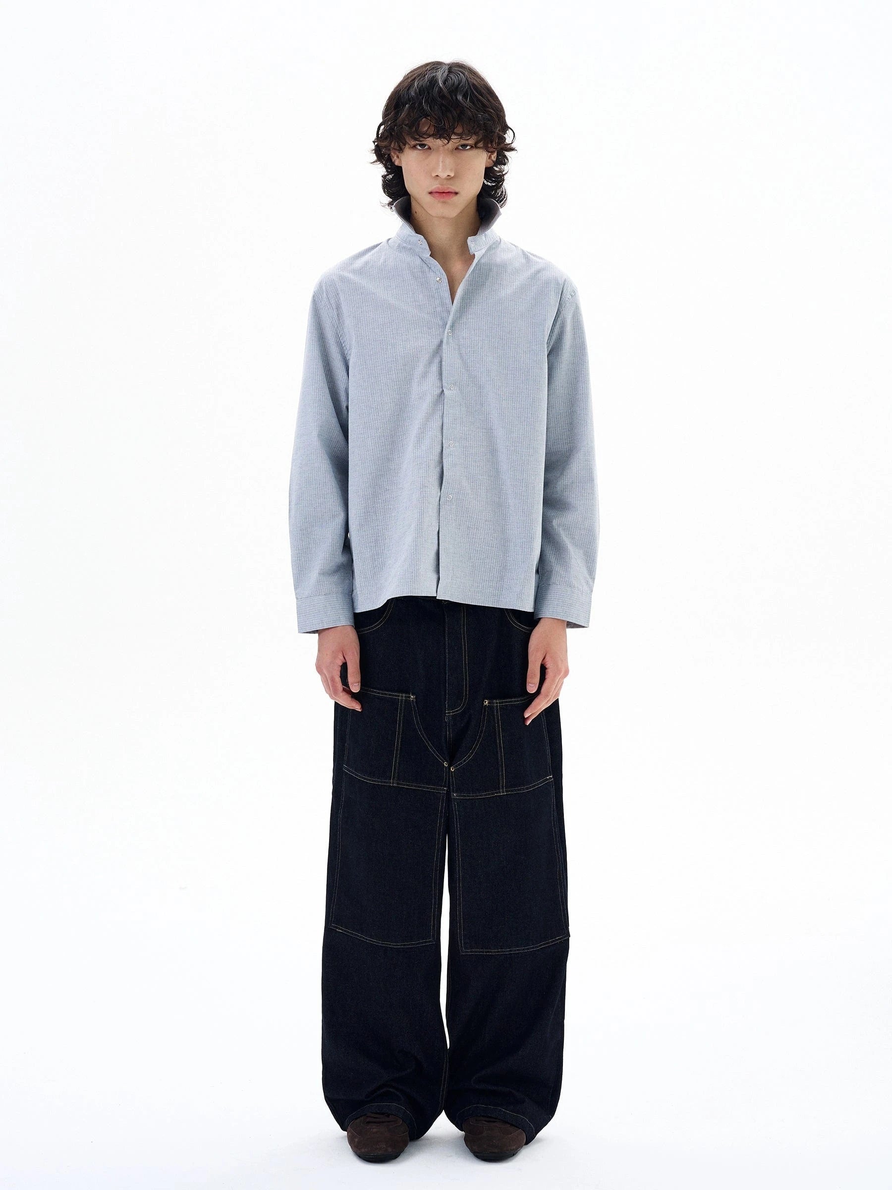 A blue button-up shirt that embodies refined craft and lasting value. Meticulously tailored from heavyweight fabric, it honors timeless tailoring and quiet luxury, inviting continued appreciation by discerning wearers and collectors alike.