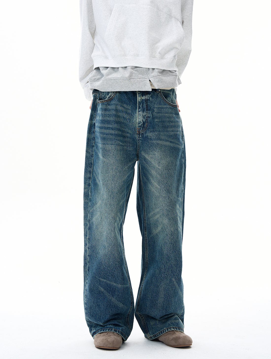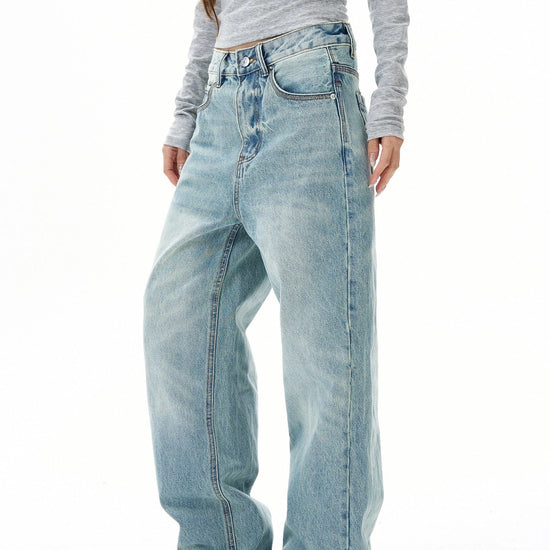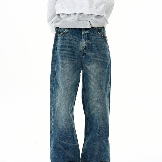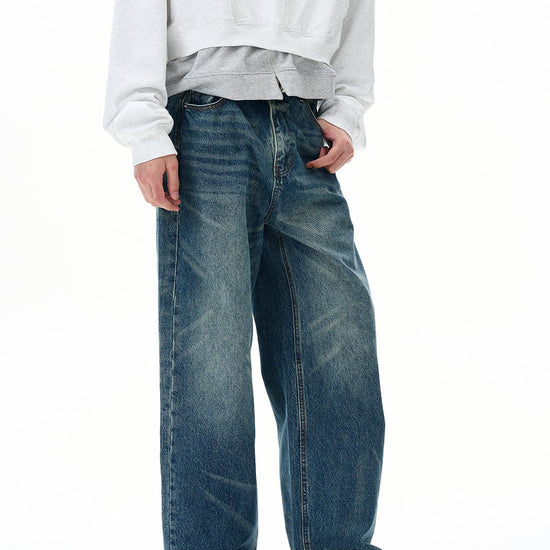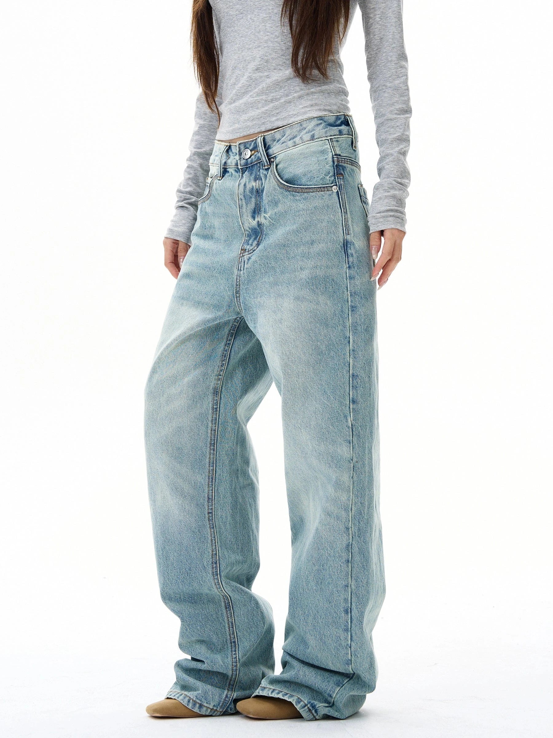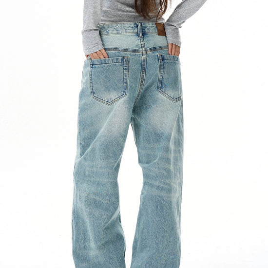 RT No. 12059 WASHED BLUE RELAX STRAIGHT DENIM JEANS