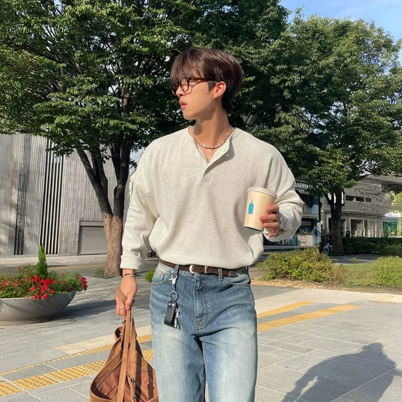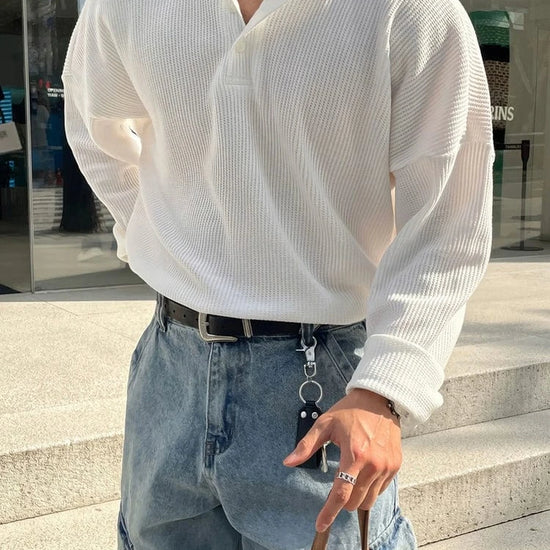 RT No. 31074 WAFFLE KNIT HENLEY COLLAR LONGSLEEVE