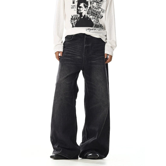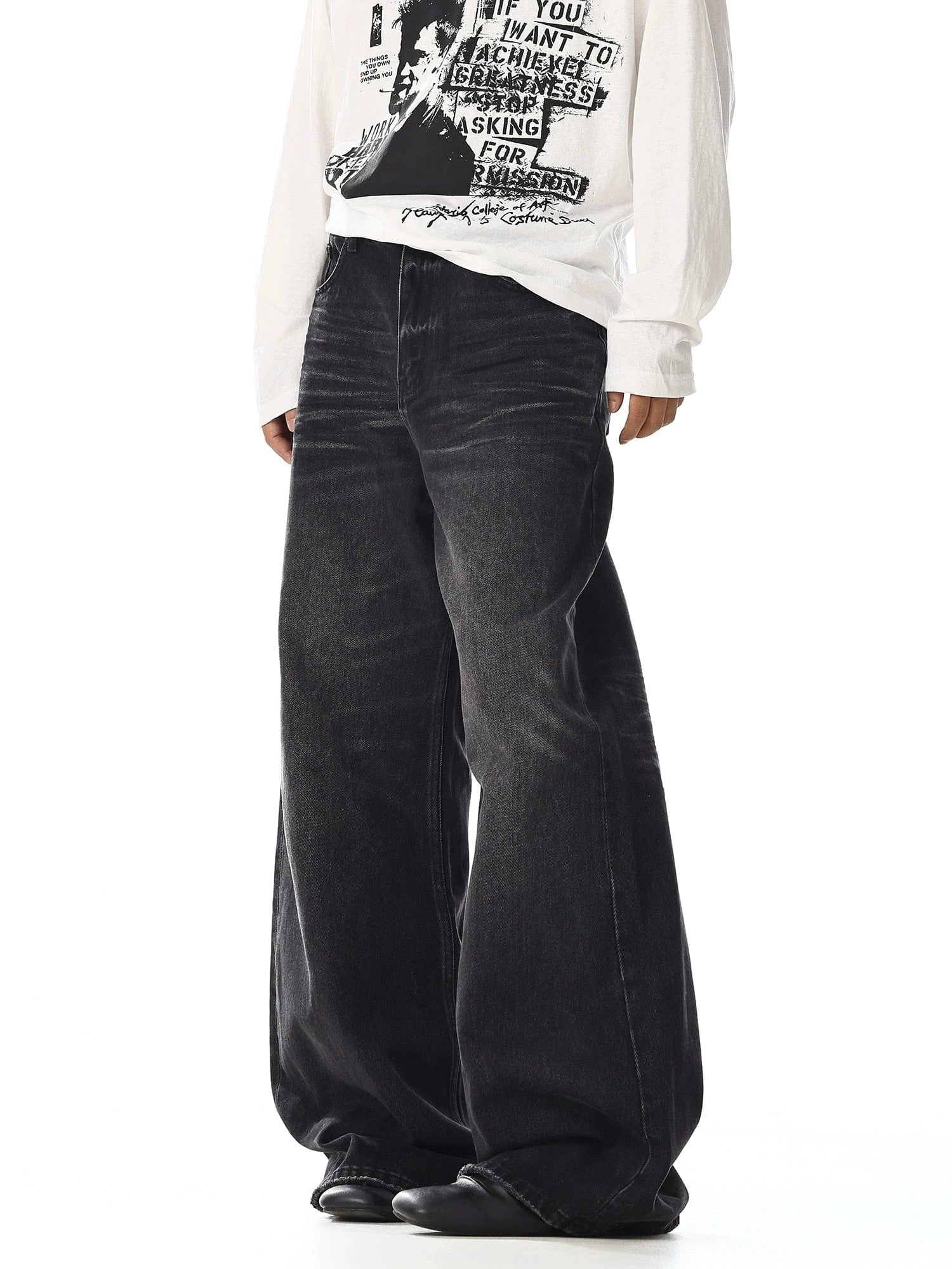 RT No. 7002 WASHED BLACK WIDE STRAIGHT DENIM JEANS