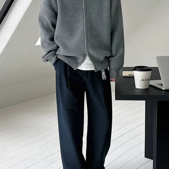 RT No. 7045 CHARCOAL KNITTED ZIP-UP HOODIE
