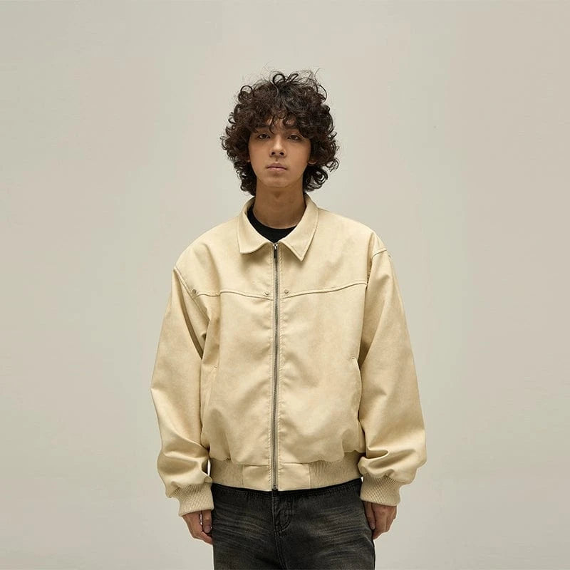 A refined leather zip-up jacket with a loose silhouette, crafted from premium hides.