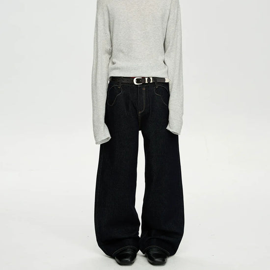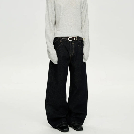 RT No. 7002 WASHED BLACK WIDE STRAIGHT DENIM JEANS
