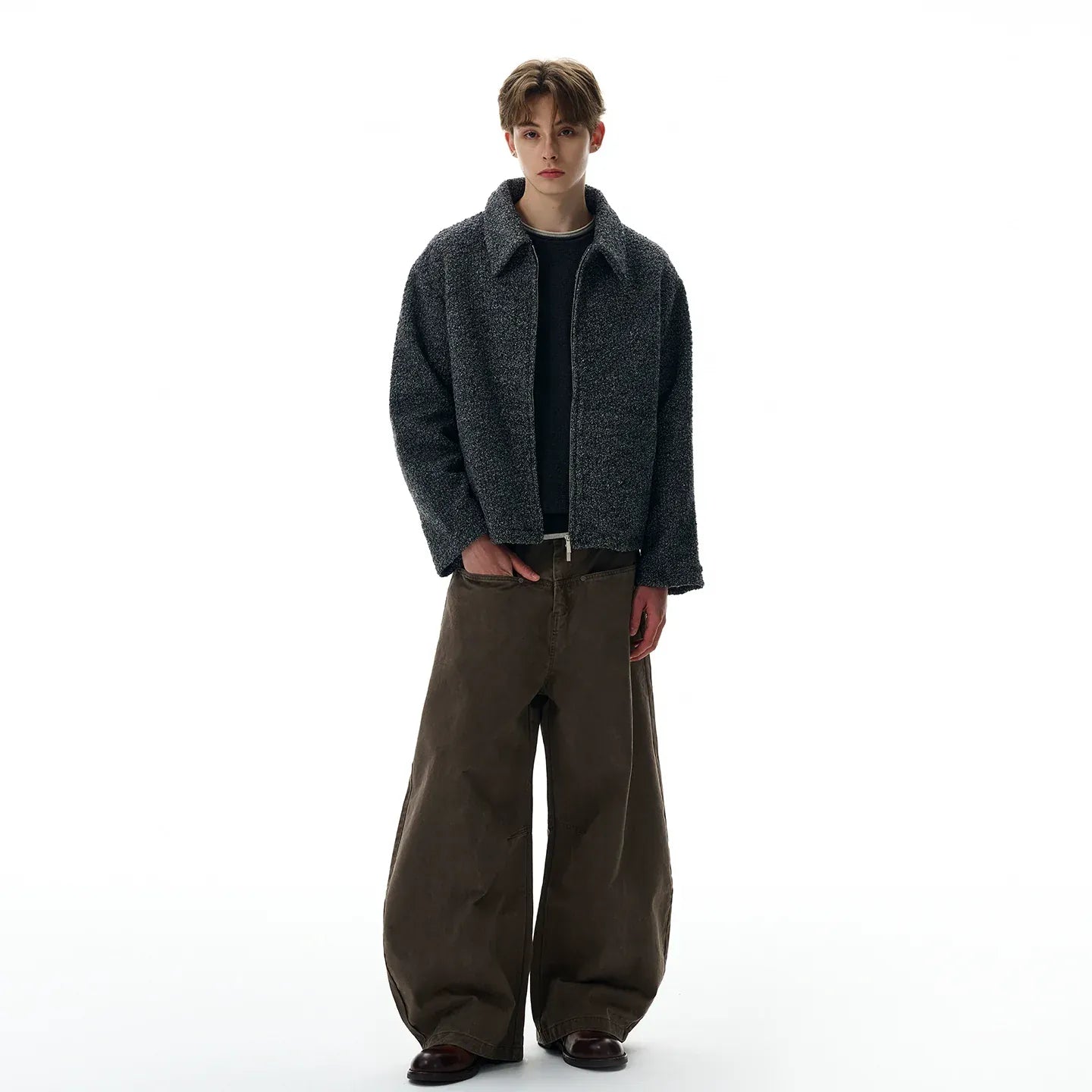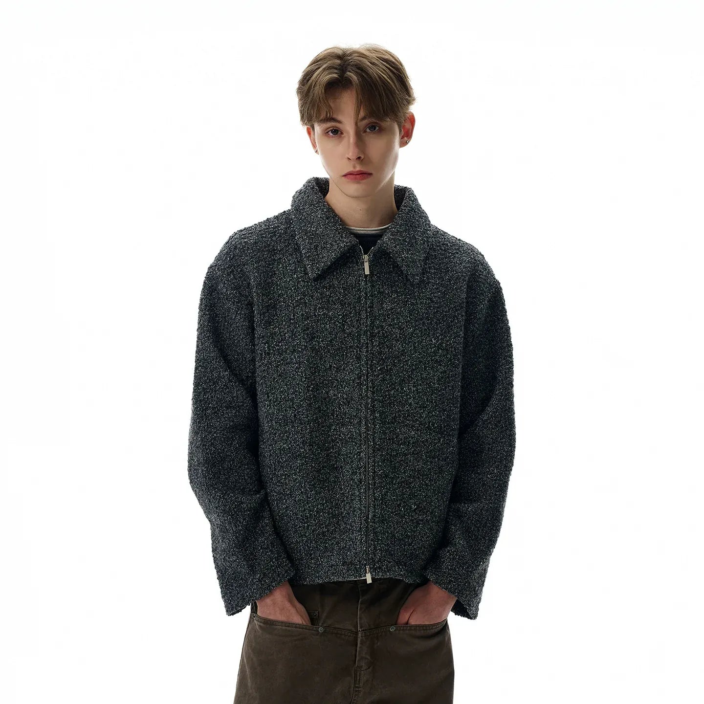 RT No. 40761 GRAY SILHOUETTE TWEED ZIPPER JACKET
