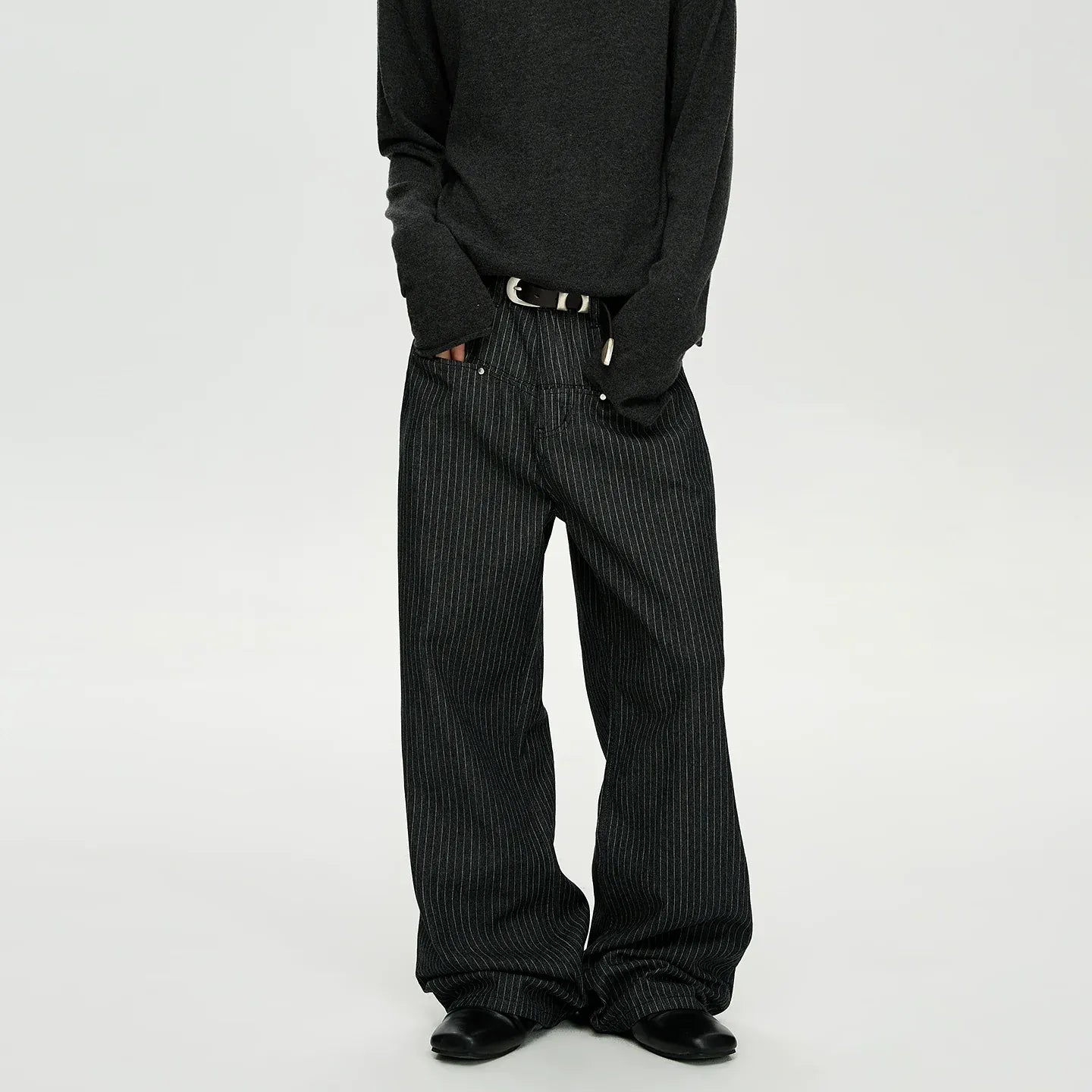 RT No. 7002 WASHED BLACK WIDE STRAIGHT DENIM JEANS