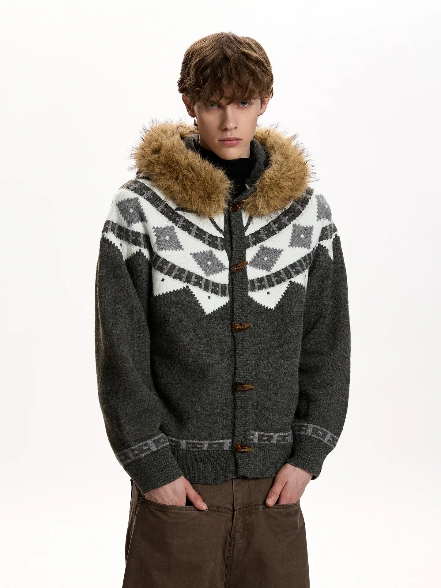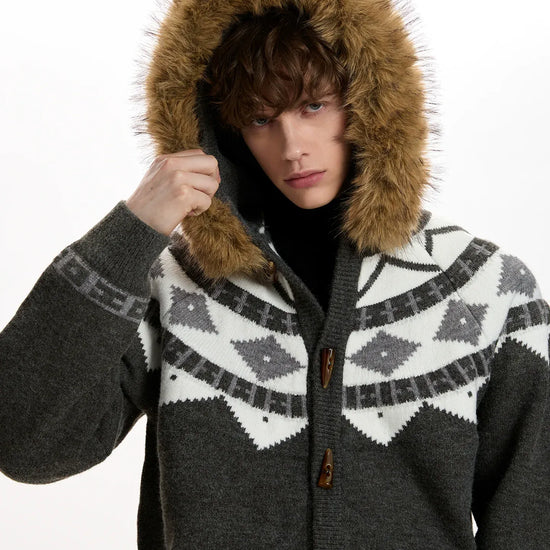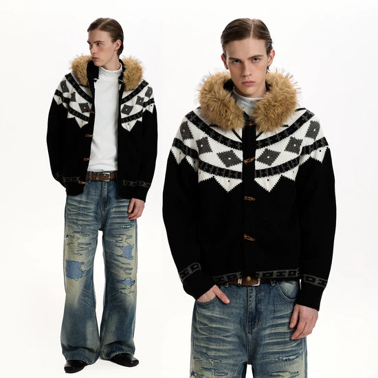 RT No. 50014 KNITWEAR DIAMOND FUR HOODIE