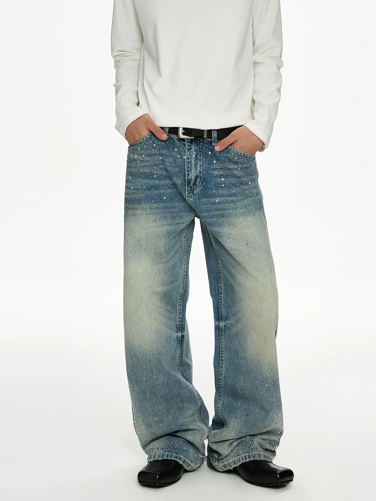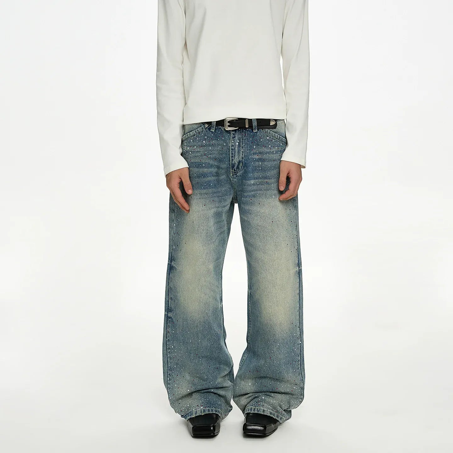 RT No. 50037 WHISKER WASH DENIM STRAIGHT JEANS