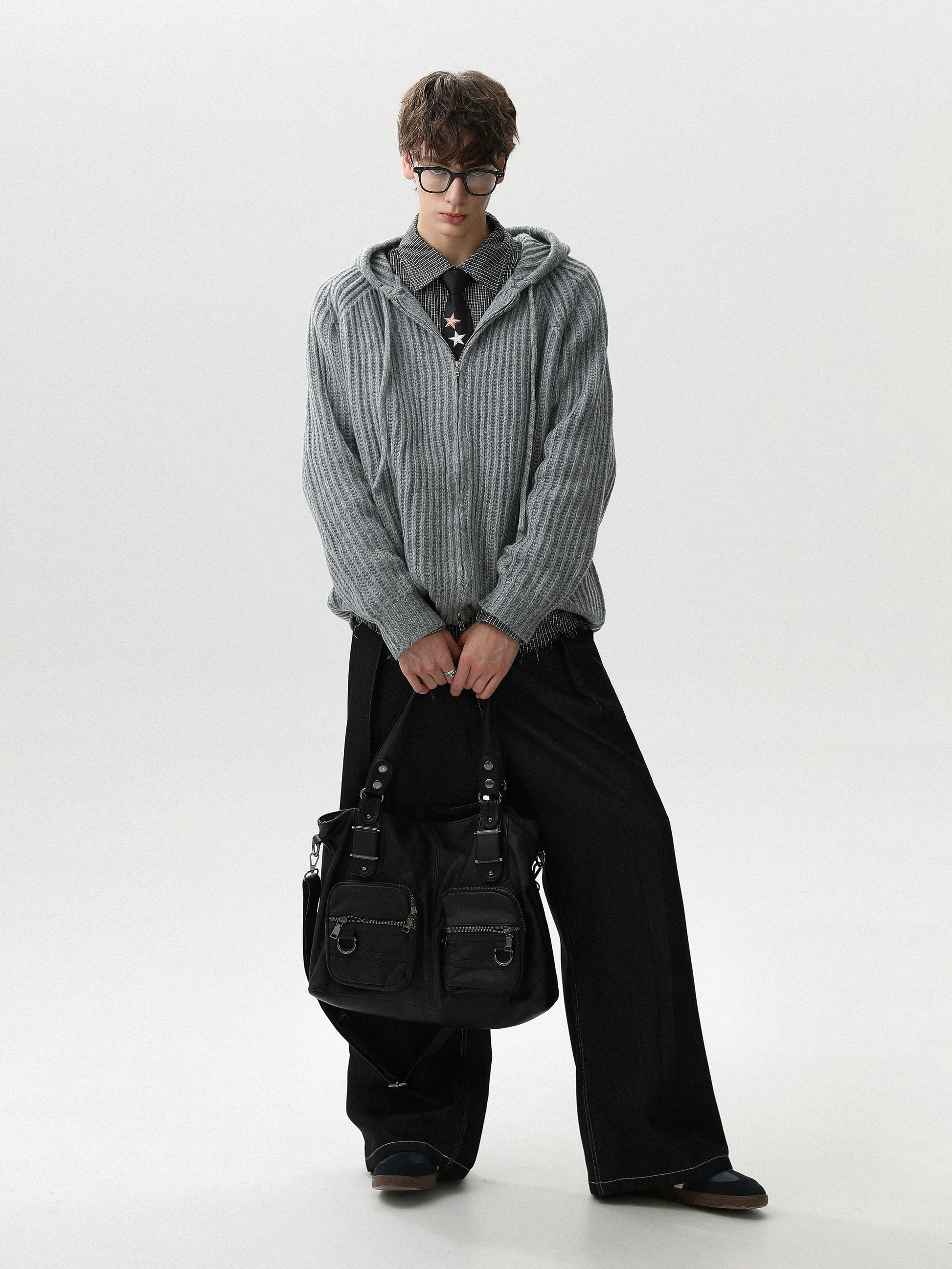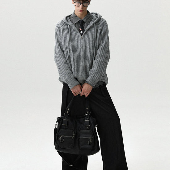 RT No. 50205 DARK GRAY KNITWEAR ZIPPER HOODIE