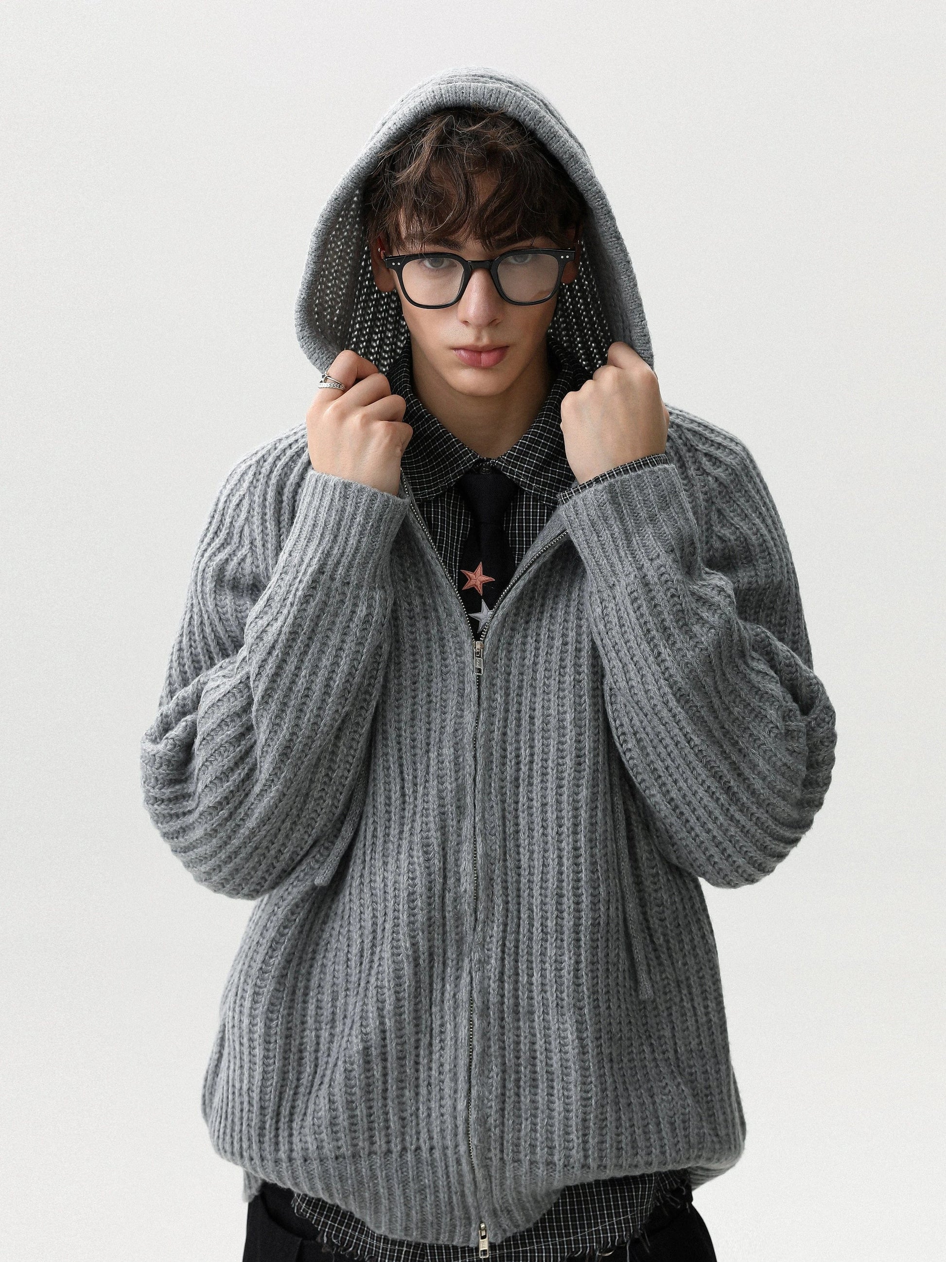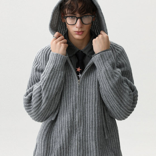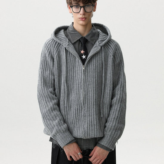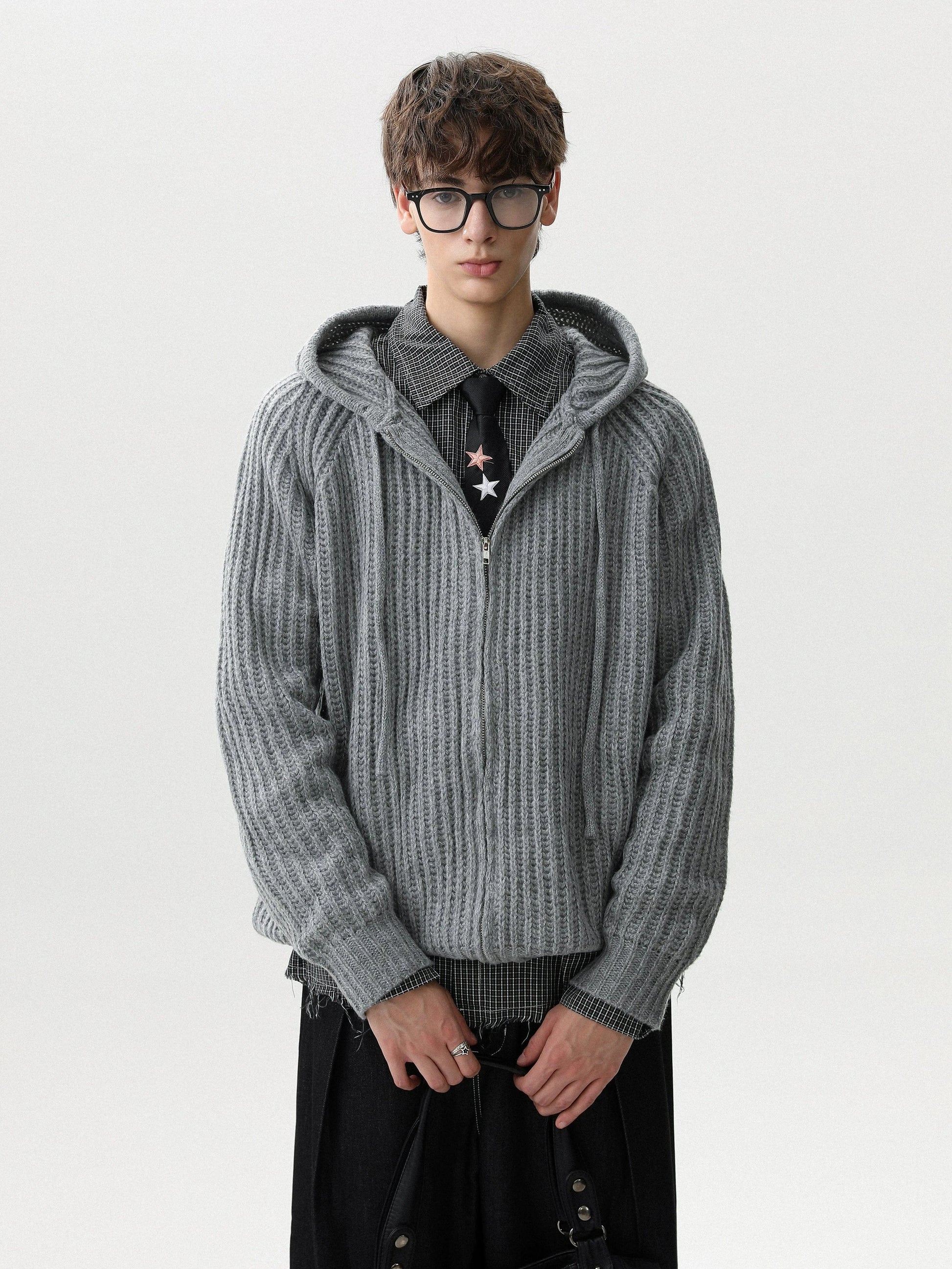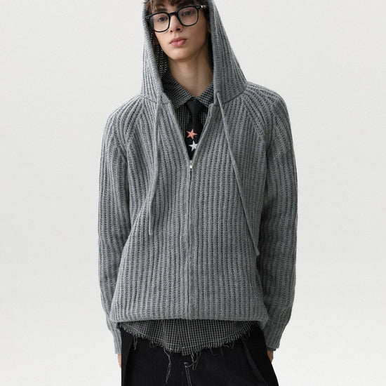 RT No. 7045 CHARCOAL KNITTED ZIP-UP HOODIE