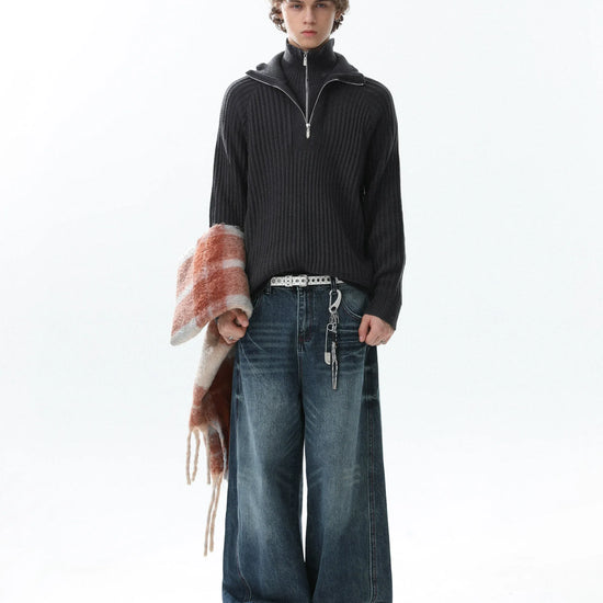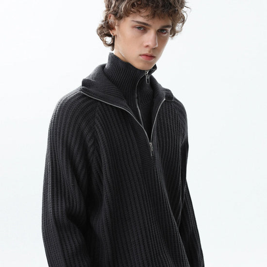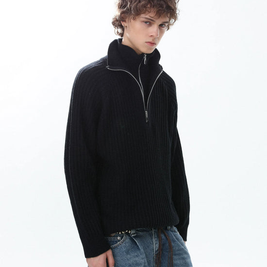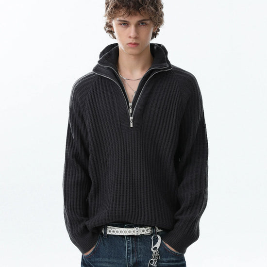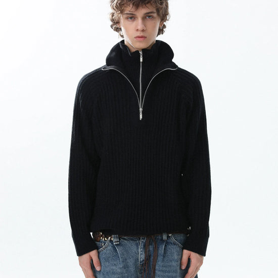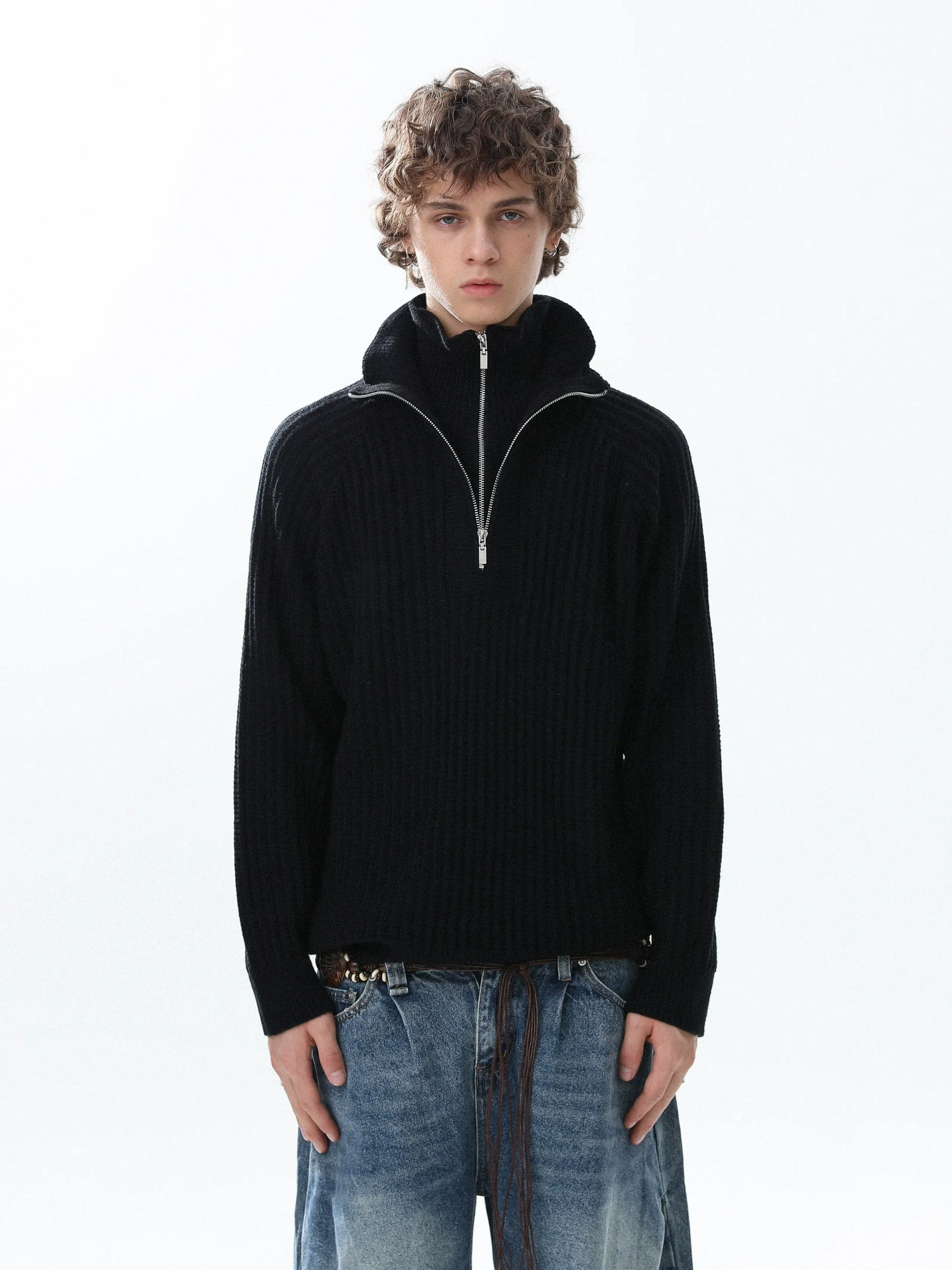 RT No. 50220 KNITWEAR DOUBLE COLLAR QUARTER ZIP SWEATER