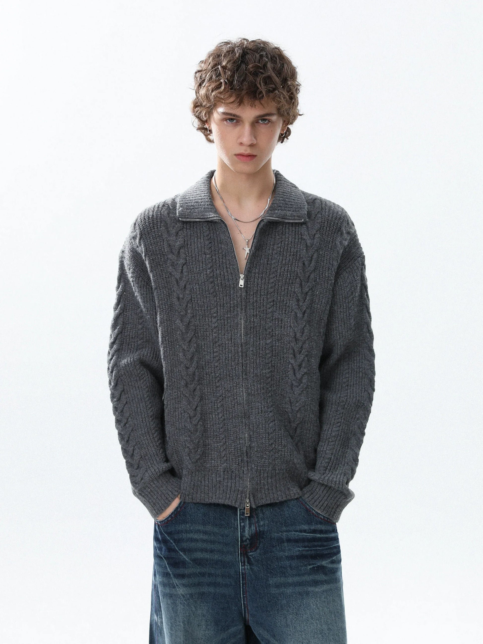 RT No. 50222 KNITWEAR TWIST ZIPPER SWEATER