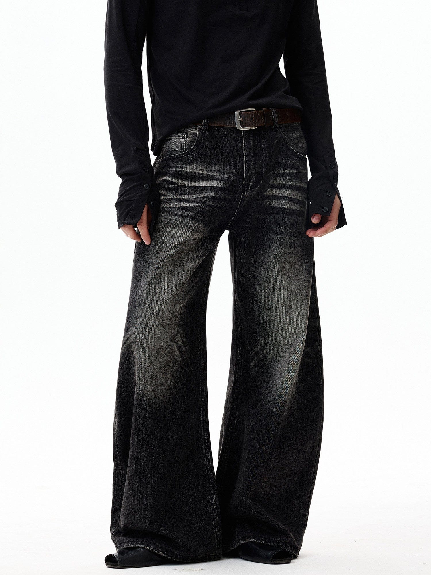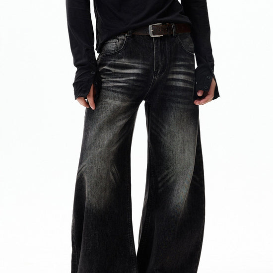 RT No. 7002 WASHED BLACK WIDE STRAIGHT DENIM JEANS