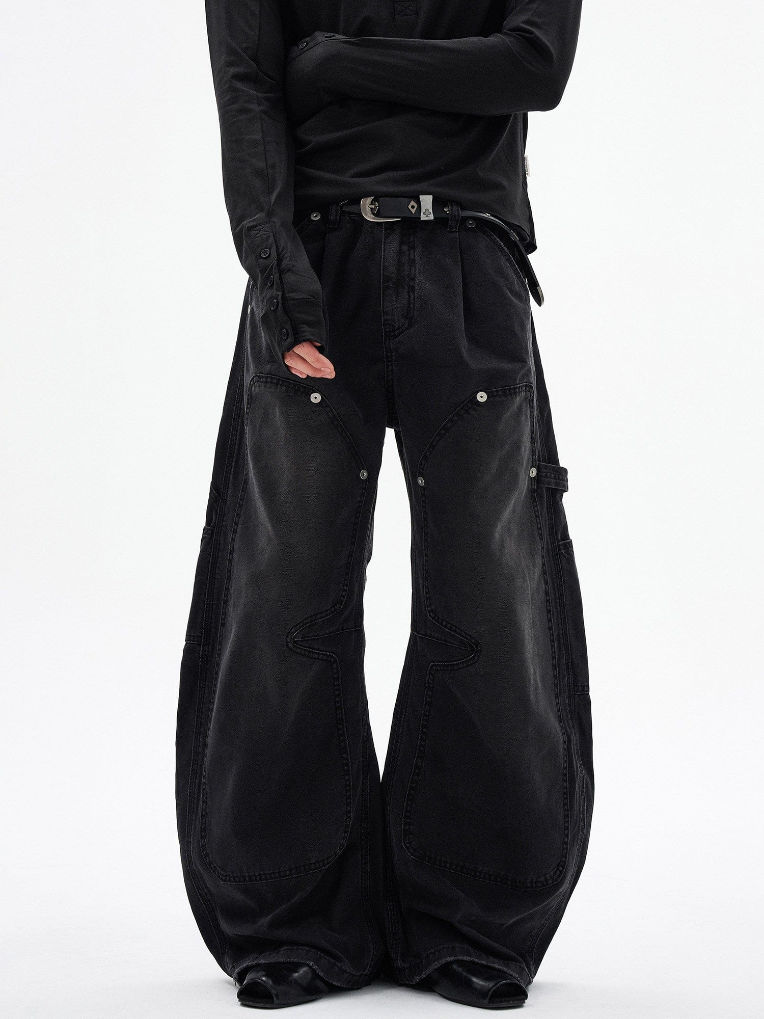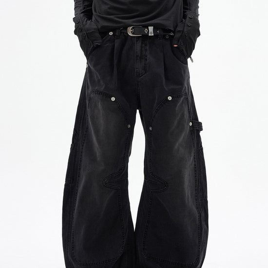 RT No. 7002 WASHED BLACK WIDE STRAIGHT DENIM JEANS