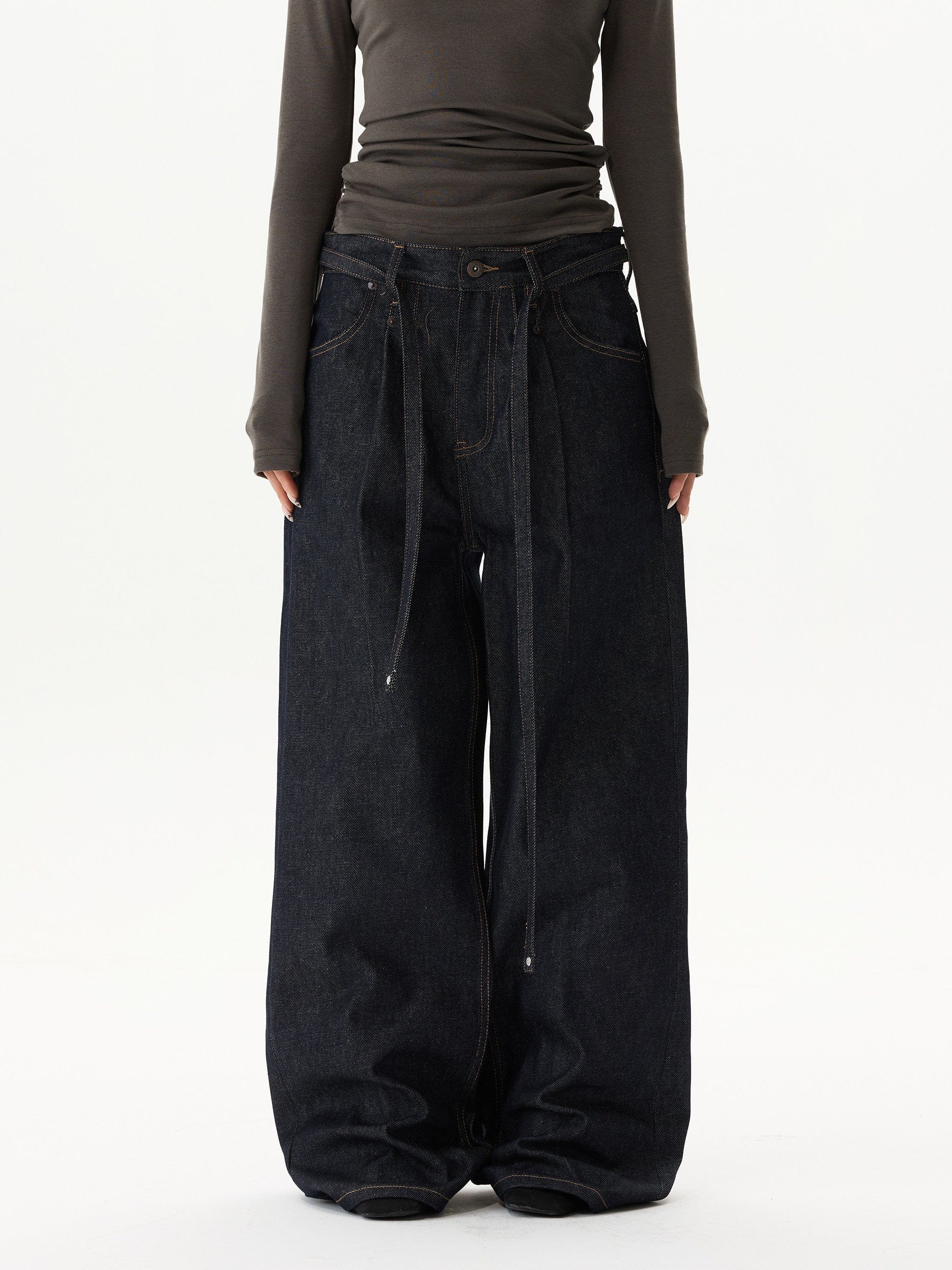 RT No. 59050 PLEATED STRAIGHT DENIM JEANS