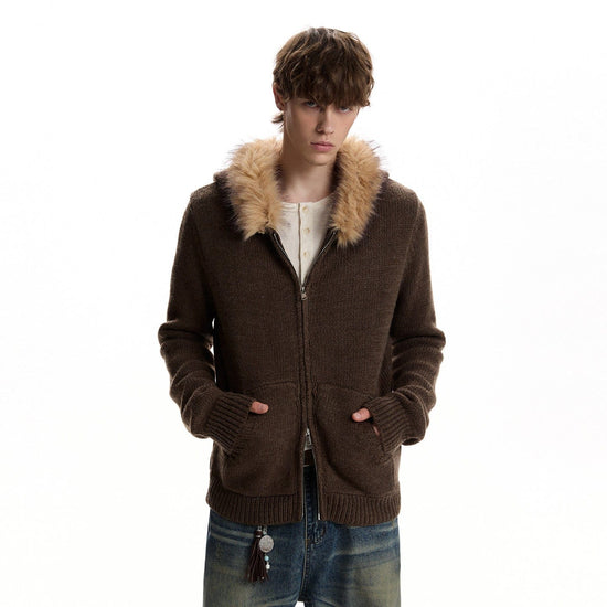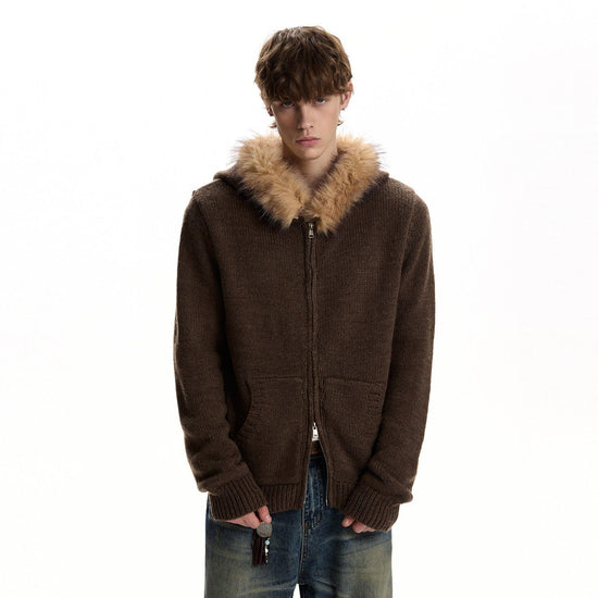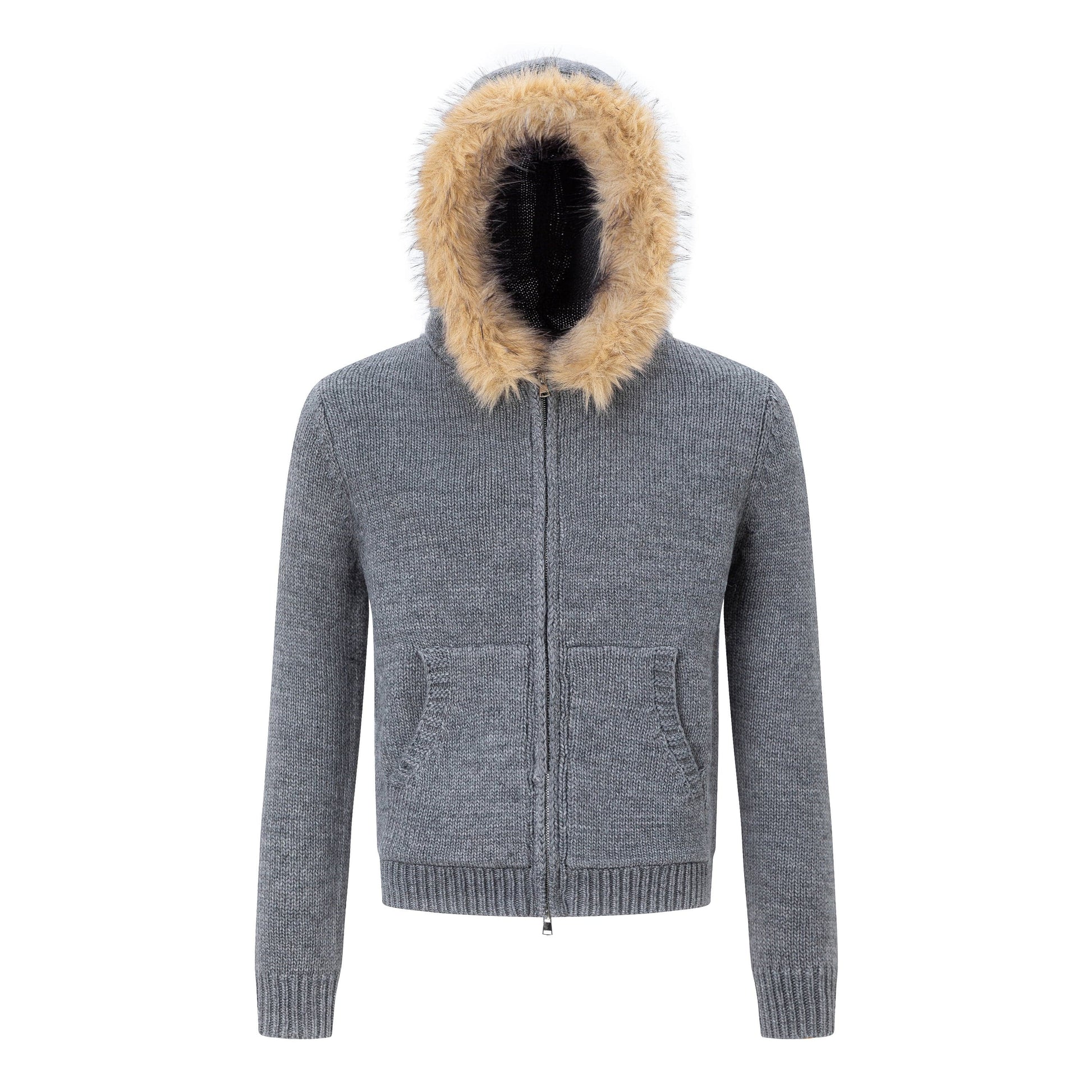 RT No. 59073 KNITWEAR FUR COLLAR ZIPPER HOODIE