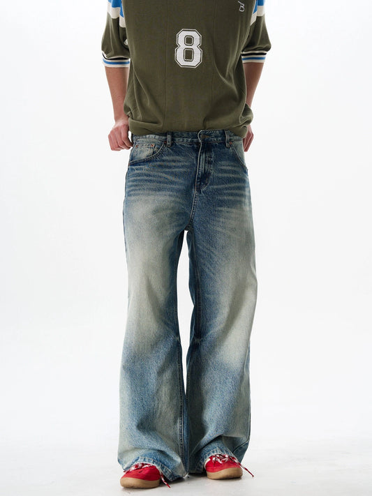 RT No. 50250 WHISKER WASH WIDE STRAIGHT DENIM JEANS