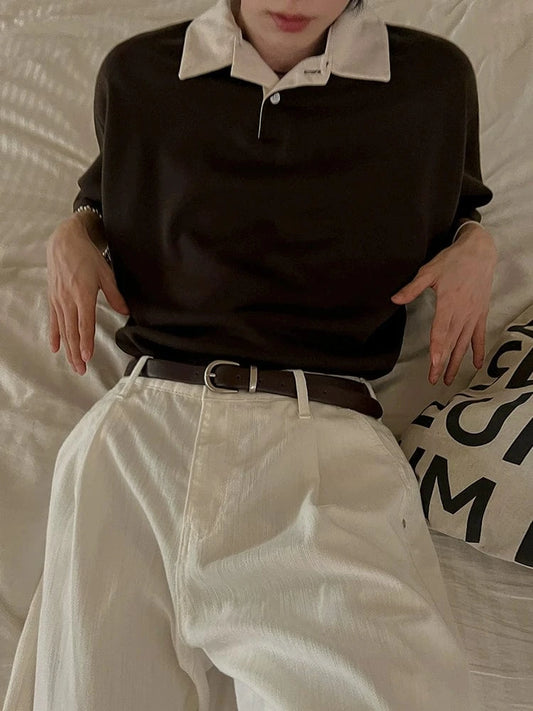 RT No. 50267 KNITWEAR TWO PIECE COLLAR V-NECK SWEATER
