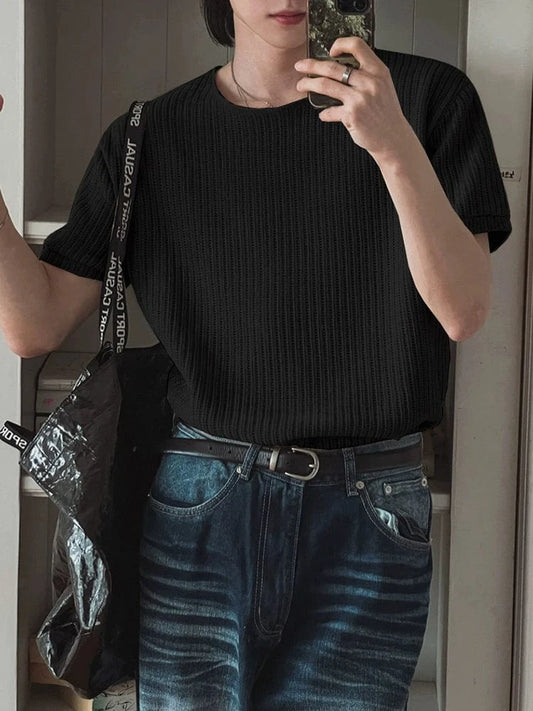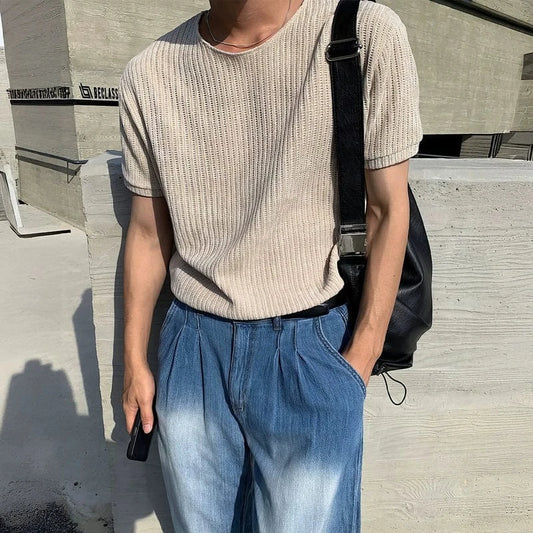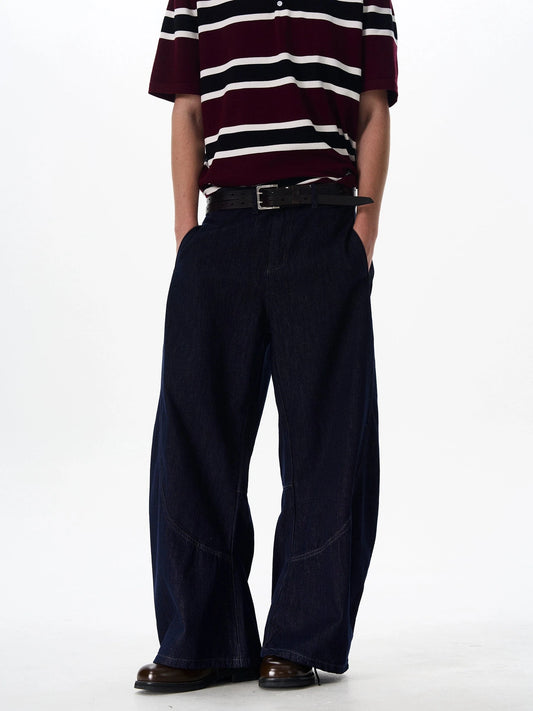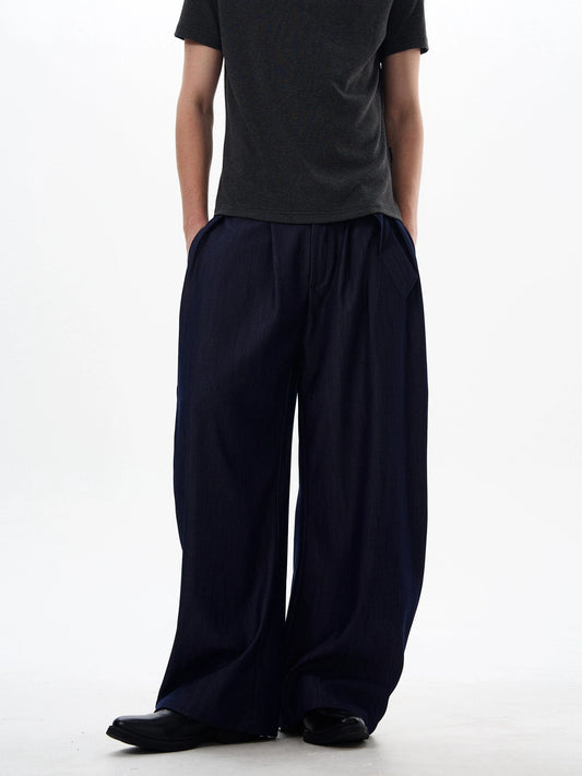 RT No. 50253 PLEATED STRIPED STRAIGHT DENIM PANTS