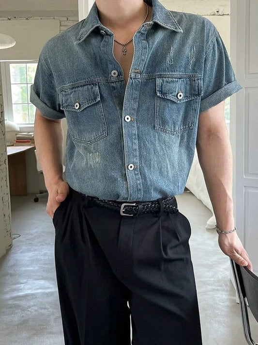 RT No. 50263 DENIM COLLAR SWEATER
