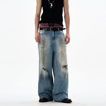 RT No. 12692 DISTRESSED WASHED DENIM STRAIGHT JEANS