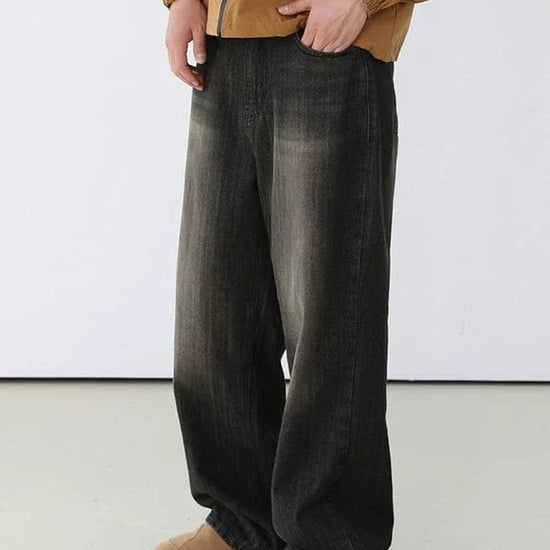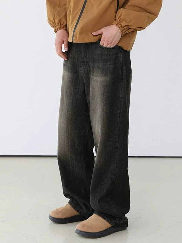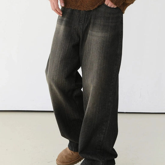 RT No. 13029 WASHED BLACK DENIM STRAIGHT JEANS