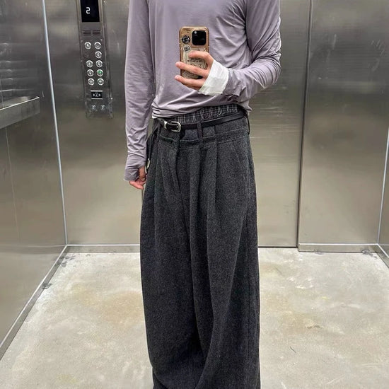 RT No. 18014 WOOLEN PLEATED STRAIGHT PANTS
