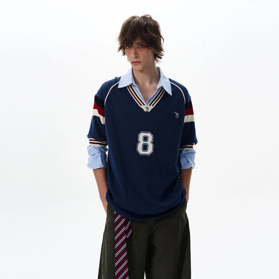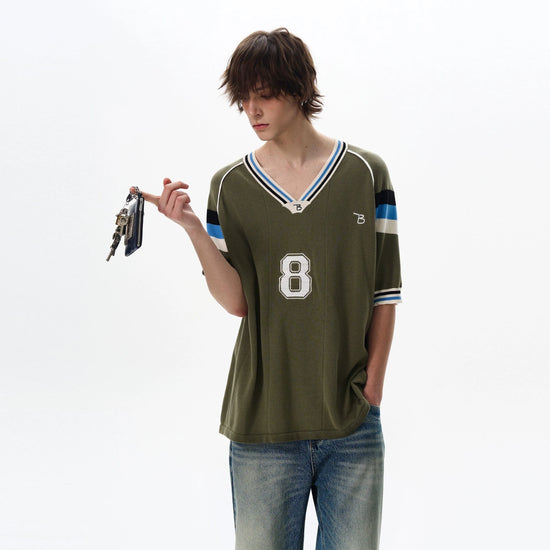 Introducing RT No. 18035 Knit V-Neck 8 Short Sleeve Sweater, a versatile knit designed for effortless layering and everyday comfort. This pullover features a classic V-neck and short sleeves, finished with an 8-numbered knit pattern that adds texture and visual interest. Available in two color options.