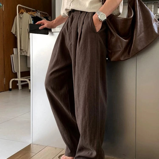 RT No. 18150 PLEATED LINEN STRAIGHT PANTS