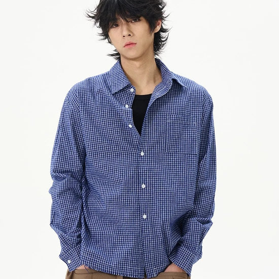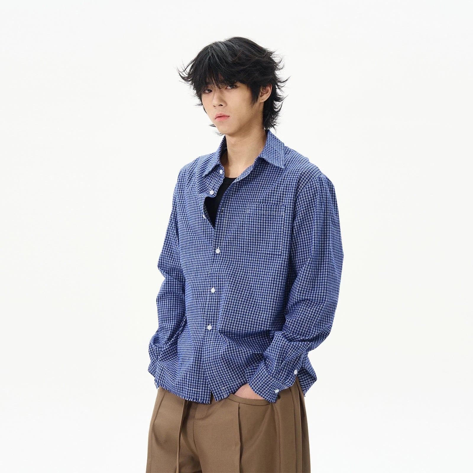 RT No. 18161 BLUE GRID BUTTON-UP SHIRT
