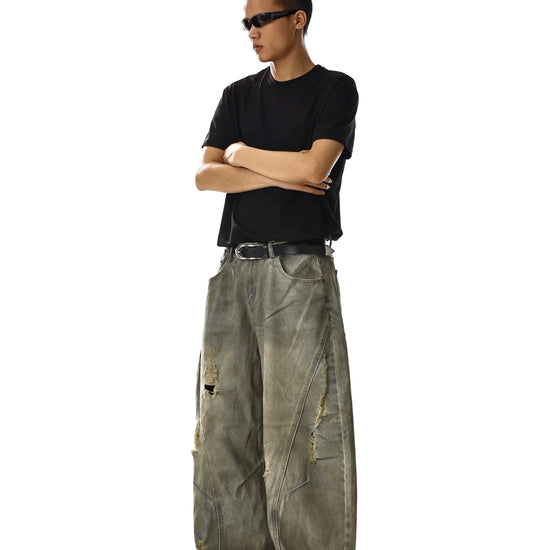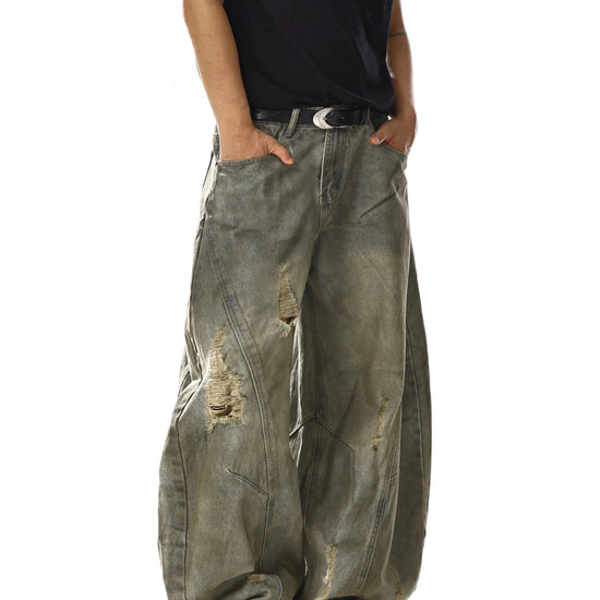 RT No. 18231 GRAY DISTRESSED DENIM PANTS