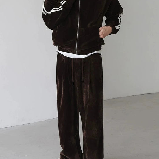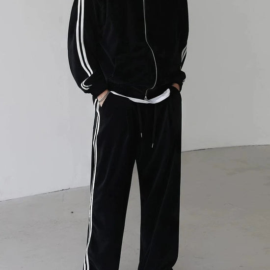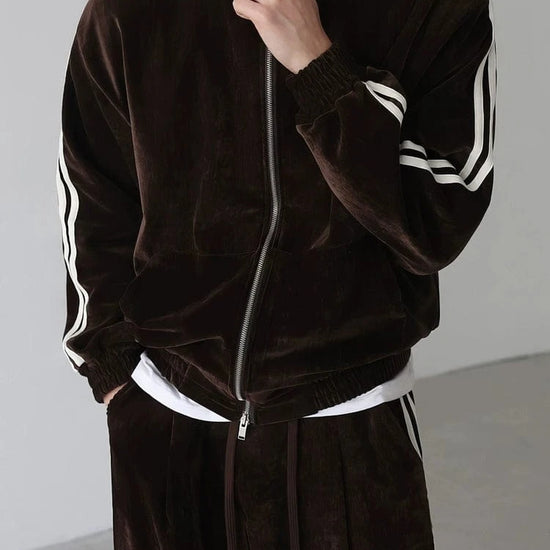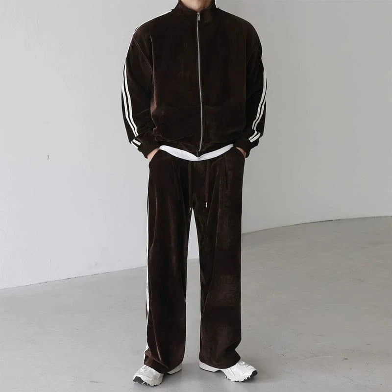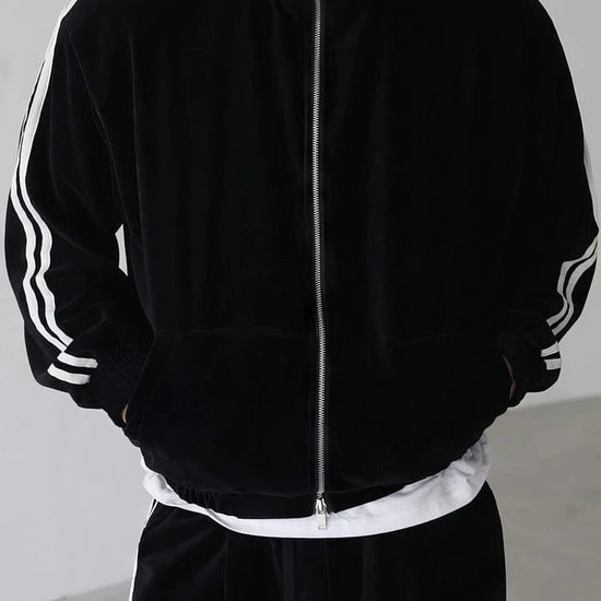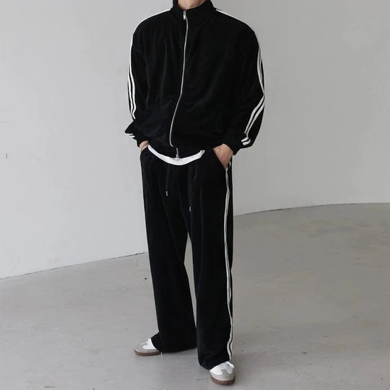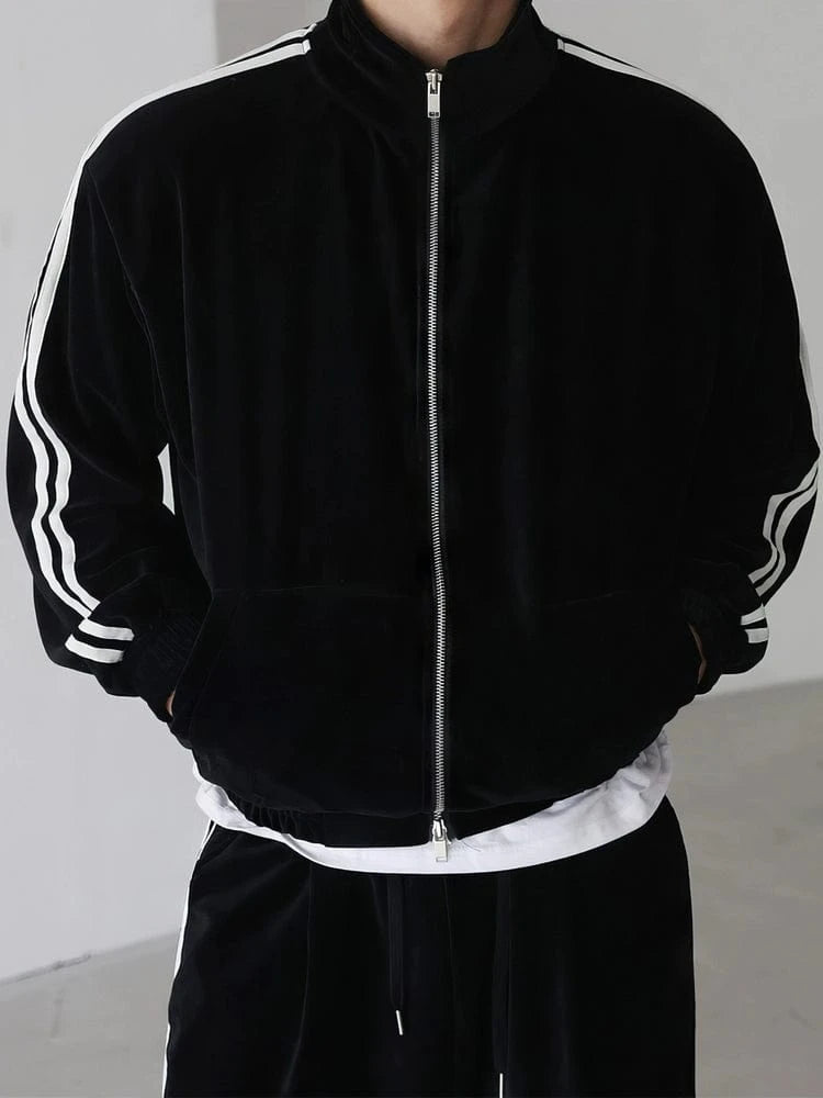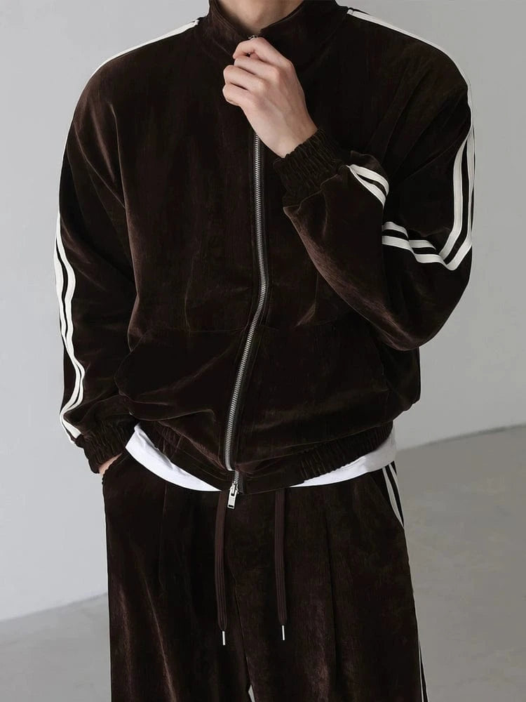 RT No. 18293 VELVET STRIPE STAND COLLAR JACKET & STRAIGHT PANTS